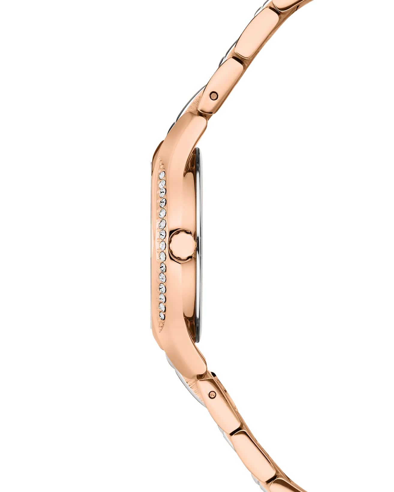 Женские наручные часы Sandara CO203.05 сочетают в себе элегантный дизайн и надежность современных технологий. Модель обладает круглым корпусом диаметром 28 мм, изготовленным из нержавеющей стали, что обеспечивает высокую устойчивость к внешним воздействиям. БезельБезельВнешний ободок, закрепляющий стекло. В спортивных часах так называется поворотное кольцо с делениями на циферблате, выполняет роль таймера – замеряет отрезки времени на шкале. Неподвижный безель – элемент декора. Однонаправленно вращающийся безель на дайверских часах позволяет фиксировать моменты погружения и выныривания на поверхность. с PVD-покрытиемPVDУльтратонкое покрытие наносится в технике вакуумного напыления, сочетает в себе нитрид титана особой прочности со слоем золота или оксида хрома. Несёт в себе декоративную или защитную функцию.. Браслет выполнен из нержавеющей стали с PVD-покрытиемPVDУльтратонкое покрытие наносится в технике вакуумного напыления, сочетает в себе нитрид титана особой прочности со слоем золота или оксида хрома. Несёт в себе декоративную или защитную функцию. и застежкой-бабочкойЗастёжка "бабочка"Такой вид застёжки дополняется предохранителями, помогающими избежать случайного раскрытия браслета. Обладают изящным исполнением. , которая отличается удобством использования и подходит для запястий любого размера благодаря своей посадке. Циферблат декорирован кристаллами, которые придают часам особый шик и неповторимый вид. Для защиты используется сапфировое стеклоСапфировое стеклоПрочный и надёжный материал из кристалла сапфира синтетического происхождения, характеризующийся особой твёрдостью и устойчивостью к царапинам и повреждениям., обеспечивающее прочную защиту от царапин. Часы работают на кварцевом механизме, что гарантирует точное время без необходимости подзаводки. Водонепроницаемость часов составляет 5 атмосфер, что позволяет использовать их в повседневной жизни, однако не рекомендуется для плавания или водных видов спорта.