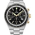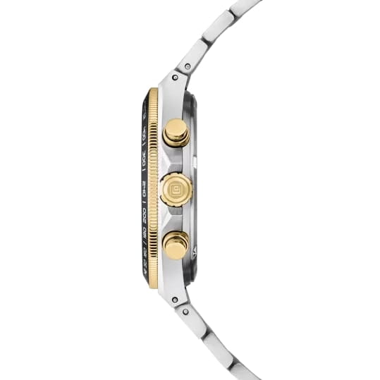 Мужские наручные часы-хронографХронографФункция позволяет измерять отрезки времени с особой точностью: часы, минуты, секунды. Верным признаком хронографа является наличие на циферблате 3 дополнительных окошек-счётчиков. Cover CO212.03 из коллекции Iconosteel сочетают в себе классический дизайн и надежность современных технологий. Модель обладает круглым корпусом диаметром 41 мм, изготовленным из нержавеющей стали с частичным PVD-покрытиемPVDУльтратонкое покрытие наносится в технике вакуумного напыления, сочетает в себе нитрид титана особой прочности со слоем золота или оксида хрома. Несёт в себе декоративную или защитную функцию., что обеспечивает высокую устойчивость к внешним воздействиям. Браслет выполнен из нержавеющей стали с раскладной застежкойРаскладной замокДанный вариант застежки используется только на часах с металлическим браслетом. Отличительная особенность такого крепления в том, что длина браслета становится универсальной и вы можете самостоятельно отрегулировать нужный вам размер – застежка просто двигается по браслету часов., гарантирующей комфортное ношение и безопасность. Черный циферблат оснащен окном даты на «4 часах» и стрелками с люминесцентным покрытиемЛюминесцентное покрытиеПозволяет считывать показания времени в темноте. Производители наносят на стрелки, часовые индексы, безель или поверхность циферблата светонакопительный состав, дающий холодное свечение.. Для защиты используется сапфировое стеклоСапфировое стеклоПрочный и надёжный материал из кристалла сапфира синтетического происхождения, характеризующийся особой твёрдостью и устойчивостью к царапинам и повреждениям., обеспечивающее прочную защиту от царапин и антибликовый эффект. Часы работают на кварцевом механизме, что гарантирует точное время без необходимости подзаводки. Модель также является хронографом, оснащенным функцией секундомераСекундомерСекундоме́р — прибор, способный измерять интервалы времени с точностью до долей секунды., делая ее идеальной для активного образа жизни. Водонепроницаемость часов достигает 10 атмосфер (100 метров), что позволяет использовать их во время плавания и других водных видов спорта, однако не рекомендуется для глубоководного дайвинга.