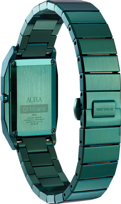 Часы D1 Milano Aura Studio 74 ARBU04 — это уникальные кварцевые часы, которые подчеркнут ваш изысканный стиль. Эти наручные часы с эффектным монохромным дизайном станут выразительным акцентом вашего образа. Изысканный корпус из стали 316L с PVD-покрытиемPVDУльтратонкое покрытие наносится в технике вакуумного напыления, сочетает в себе нитрид титана особой прочности со слоем золота или оксида хрома. Несёт в себе декоративную или защитную функцию. диаметром 23 мм придает часам современный и утонченный вид. Зеленый циферблат и зеленые стрелки создают стильный контраст, подчёркивая элегантность модели. Задняя крышка закреплена на 4-х винтах. Стальной браслет с PVD-покрытиемPVDУльтратонкое покрытие наносится в технике вакуумного напыления, сочетает в себе нитрид титана особой прочности со слоем золота или оксида хрома. Несёт в себе декоративную или защитную функцию. с застёжкой «бабочка»Застёжка "бабочка"Такой вид застёжки дополняется предохранителями, помогающими избежать случайного раскрытия браслета. Обладают изящным исполнением. обеспечивает надежность и комфорт в повседневном использовании. Сапфировое стеклоСапфировое стеклоПрочный и надёжный материал из кристалла сапфира синтетического происхождения, характеризующийся особой твёрдостью и устойчивостью к царапинам и повреждениям. с антибликовым покрытиемАнтибликовое покрытиеСлой оксида металла в 0,13-0,3 микрон, благодаря которому стекло часов не бликует и не отражает свет. Антибликовое покрытие уменьшает отражение света в 10 раз, обеспечивая отличную читаемость показателей циферблата. защищает циферблат, а водозащита до 50WR делает эти часы практичным выбором для любых условий. Благодаря калибру Miyota 1L22 часы отличается точностью и надежностью. Эти итальянские часы представляют собой идеальное сочетание традиционного мастерства и инновационного подхода, воплощая в себе новый взгляд на классическую элегантность.