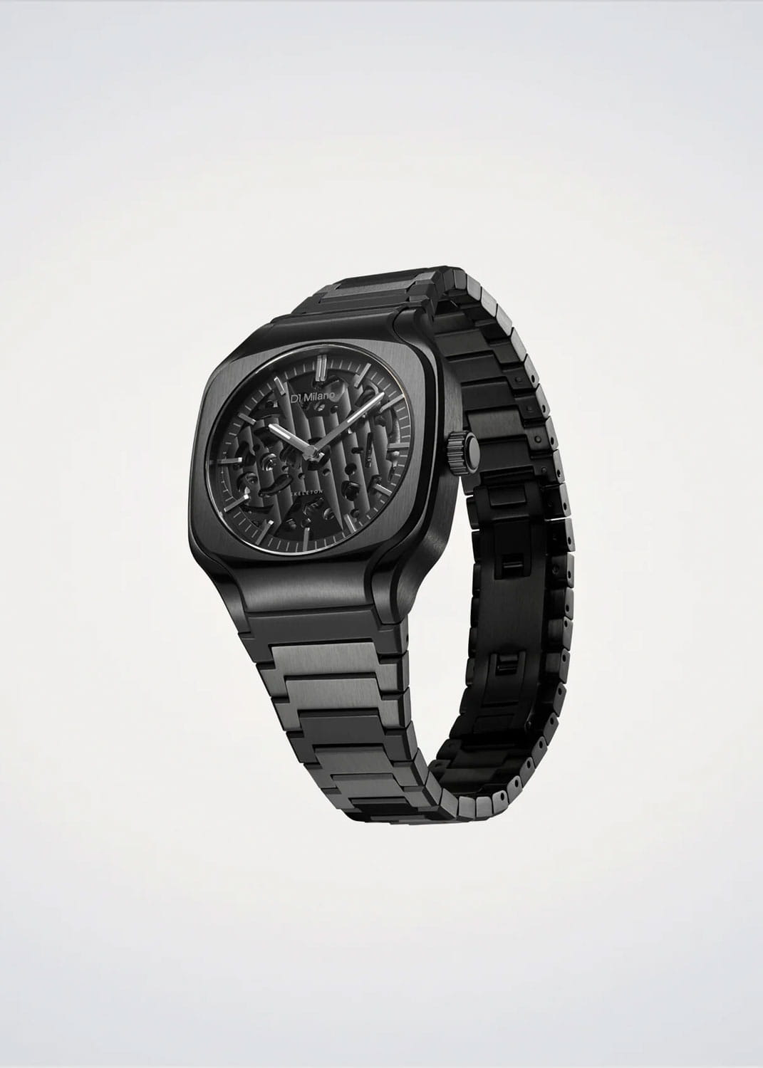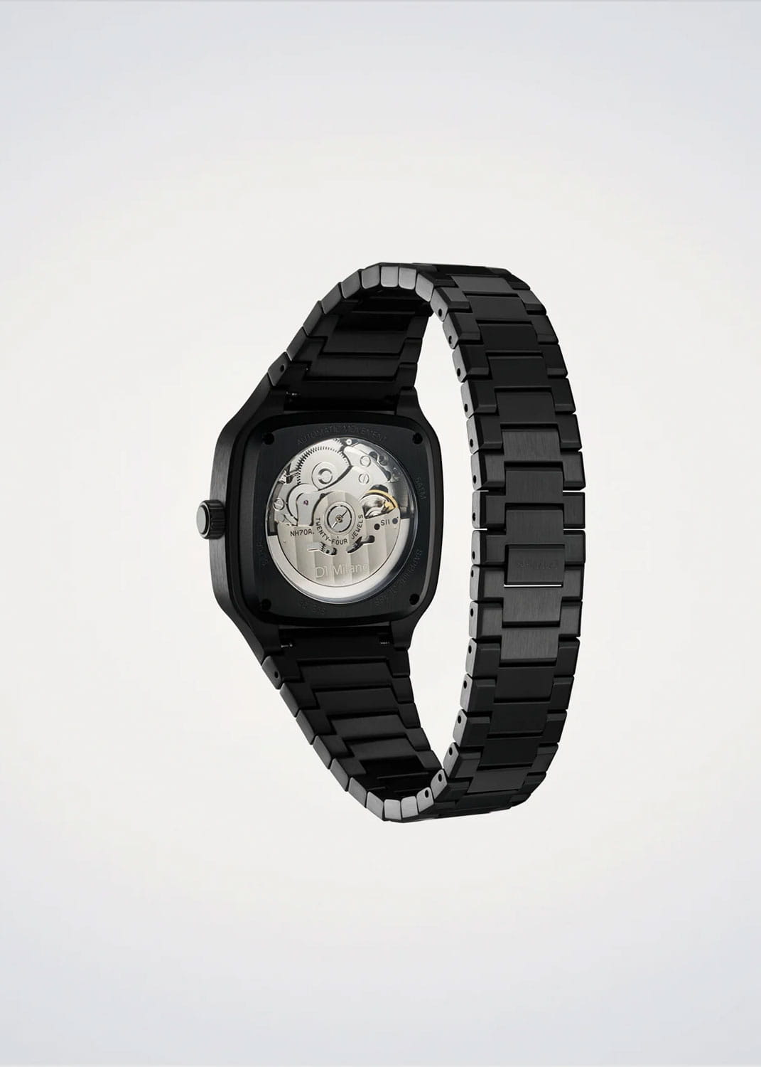 Часы D1 Milano Square SLBJ02 — это эффектные механические мужские часы, разработанные для ценителей уникальных аксессуаров. Их утонченный дизайн и высокое качество исполнения делают эти часы незаменимым элементом вашего стиля. Изготовленные в Италии, они оснащены надежным механизмом Seiko SII NH70 с автоподзаводом, обеспечивающими запас хода до 41 часа. Частота работы механизма составляет 21600 полуколебаний в час. Часы имеют корпус из нержавеющей стали с PVD-покрытиемPVDУльтратонкое покрытие наносится в технике вакуумного напыления, сочетает в себе нитрид титана особой прочности со слоем золота или оксида хрома. Несёт в себе декоративную или защитную функцию. черного цвета, размером 37х37 мм, что гарантирует долговечность и стойкость к внешним воздействиям. Скелетонизированный циферблат защищен сапфировым стекломСапфировое стеклоПрочный и надёжный материал из кристалла сапфира синтетического происхождения, характеризующийся особой твёрдостью и устойчивостью к царапинам и повреждениям. с антибликовым покрытиемАнтибликовое покрытиеСлой оксида металла в 0,13-0,3 микрон, благодаря которому стекло часов не бликует и не отражает свет. Антибликовое покрытие уменьшает отражение света в 10 раз, обеспечивая отличную читаемость показателей циферблата., подчеркивающим элегантность и изысканность модели и защищает от царапин. Стрелки с люминесцентным покрытиемЛюминесцентное покрытиеПозволяет считывать показания времени в темноте. Производители наносят на стрелки, часовые индексы, безель или поверхность циферблата светонакопительный состав, дающий холодное свечение.. Метки в виде штрихов и прозрачная задняя крышка, закрепленная на 4 винтах, придают часам особый шарм. Стальной браслет с PVD-покрытиемPVDУльтратонкое покрытие наносится в технике вакуумного напыления, сочетает в себе нитрид титана особой прочности со слоем золота или оксида хрома. Несёт в себе декоративную или защитную функцию. на застёжке-бабочкеЗастёжка "бабочка"Такой вид застёжки дополняется предохранителями, помогающими избежать случайного раскрытия браслета. Обладают изящным исполнением. обеспечивает комфортное и надежное ношение. Водозащита до 50 WR делает эти часы подходящими для повседневного использования.