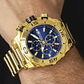 Эксклюзивный хронографХронографФункция позволяет измерять отрезки времени с особой точностью: часы, минуты, секунды. Верным признаком хронографа является наличие на циферблате 3 дополнительных окошек-счётчиков. с секундомеромСекундомерСекундоме́р — прибор, способный измерять интервалы времени с точностью до долей секунды., отличающийся продуманным дизайном и отделкой, придется по вкусу мужчинам, ценящим идеальное соотношение цены и качества. Сапфировое стеклоСапфировое стеклоПрочный и надёжный материал из кристалла сапфира синтетического происхождения, характеризующийся особой твёрдостью и устойчивостью к царапинам и повреждениям. устойчивое к появлению царапин, обладающее высокой прозрачностью. Класс водозащиты: 100 метров, позволит защитить корпус от случайных брызг или капель дождя. Метки в виде штрихов. 12-ти и 24-х часовой формат времени. Стрелки и метки с нанесенным люминесцентным покрытиемЛюминесцентное покрытиеПозволяет считывать показания времени в темноте. Производители наносят на стрелки, часовые индексы, безель или поверхность циферблата светонакопительный состав, дающий холодное свечение.