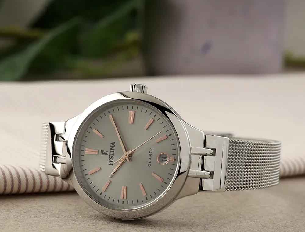 Часы Festina Mademoiselle F20712/1 для женщин представляют собой гармоничное сочетание современного стиля и функциональности. Эти часы имеют корпус из нержавеющей стали серебристого цвета шириной 33 мм, который придает изделию элегантный и утонченный вид. Серебристый циферблат защищен сапфировым стекломСапфировое стеклоПрочный и надёжный материал из кристалла сапфира синтетического происхождения, характеризующийся особой твёрдостью и устойчивостью к царапинам и повреждениям., что гарантирует устойчивость к царапинам и долговечность. Функция отображения даты, расположенная на отметке «6 часов», добавляет практичности и удобства в использовании. Водонепроницаемость на глубине до 50 метров обеспечивает защиту от незначительных брызг, делая эти часы надежными в повседневном использовании. Браслет из нержавеющей стали в миланском плетении с раскладным замкомРаскладной замокДанный вариант застежки используется только на часах с металлическим браслетом. Отличительная особенность такого крепления в том, что длина браслета становится универсальной и вы можете самостоятельно отрегулировать нужный вам размер – застежка просто двигается по браслету часов. также выполнен в серебристом цвете и прекрасно дополняет общий дизайн, создавая цельный и привлекательный образ.