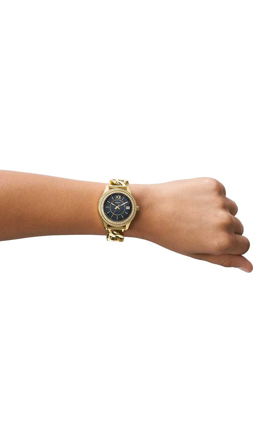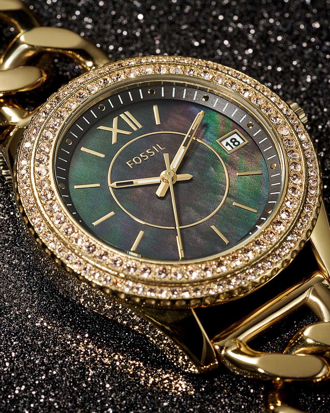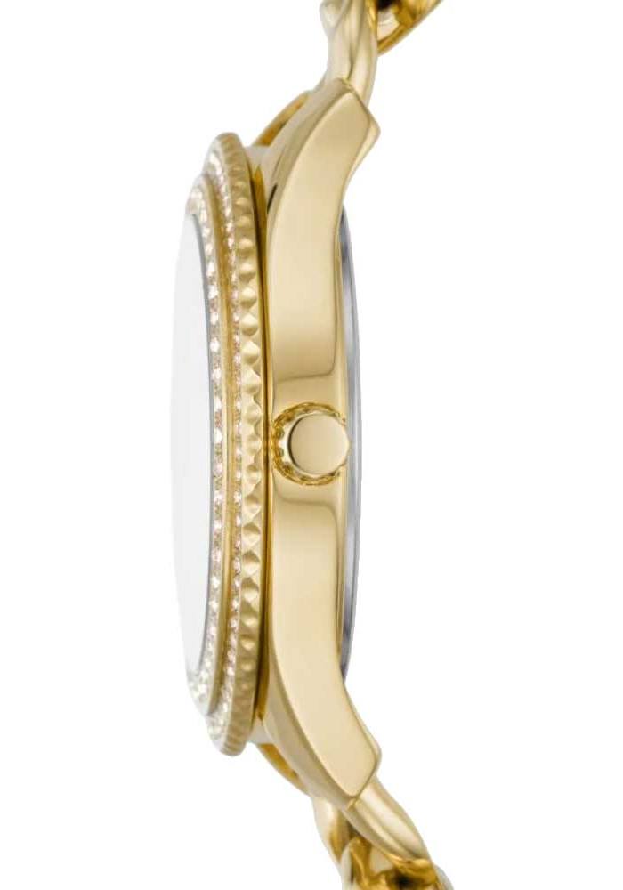 Женские американские часы Fossil Stella ES5133, кварцевый механизм с высокой точностью. Класс водозащиты: 50 метров, позволит защитить корпус от случайных брызг или капель дождя. Корпус часов изготовлен из стали, золотистого цвета.