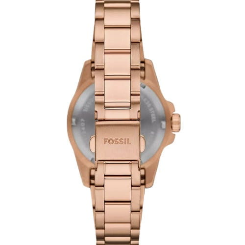 Женские часы Fossil Blue Dive ES5371 — это изящный и практичный аксессуар, который станет идеальным дополнением как для повседневных, так и для вечерних образов. Модель сочетает в себе элегантный дизайн и высокое качество, что делает её универсальным выбором для любой ситуации. Часы оснащены кварцевым механизмом, обеспечивающим точность и надёжность хода. Корпус и браслет выполнен из стали с розово-золотистым IP-покрытиемIP-покрытиеМетод ионного напыления. Демонстрирует повышенную устойчивость к истиранию, окислению и химическим веществам. Под воздействием высокого давления и температуры около 1500°C молекулы металла надёжно соединяются с частицами корпуса часов., что гарантирует долговечность и современный вид. А на вращающийся в одном направлении безельБезельВнешний ободок, закрепляющий стекло. В спортивных часах так называется поворотное кольцо с делениями на циферблате, выполняет роль таймера – замеряет отрезки времени на шкале. Неподвижный безель – элемент декора. Однонаправленно вращающийся безель на дайверских часах позволяет фиксировать моменты погружения и выныривания на поверхность. нанесено зеленое IP-покрытиемIP-покрытиеМетод ионного напыления. Демонстрирует повышенную устойчивость к истиранию, окислению и химическим веществам. Под воздействием высокого давления и температуры около 1500°C молекулы металла надёжно соединяются с частицами корпуса часов.. Минеральное стеклоМинеральное стеклоМинеральное стекло представляет собой искусственно выращенный минерал кварца. Такое стекло отличается особой устойчивостью к повреждениям и царапинам. Уступает по некоторым качествам сапфировому стеклу. защищает циферблат от царапин и механических повреждений, а рифленая заводная головка и браслет с раскладной застёжкойРаскладная застёжкаТакой тип застёжки используется только на браслетах из металла. Она никогда не раскрывается полностью, происходит разделение на 2 и более частей. Раскладывающая застёжка снизит вероятность потери часов к минимуму. обеспечивают удобство и комфорт в ношении. Стрелки с люминесцентным покрытиемЛюминесцентное покрытиеПозволяет считывать показания времени в темноте. Производители наносят на стрелки, часовые индексы, безель или поверхность циферблата светонакопительный состав, дающий холодное свечение. позволяют легко считывать время даже в условиях низкой освещенности, а метки в виде штрихов и точек, инкрустированных кристаллами. Водозащита до 10 бар (100 метров) позволяет не только принимать душ, но и плавать, не снимая часы. Зеленый циферблат придает часам свежий и стильный вид. Международная гарантия от производителя на 24 месяца дает уверенность в качестве и надежности часов.