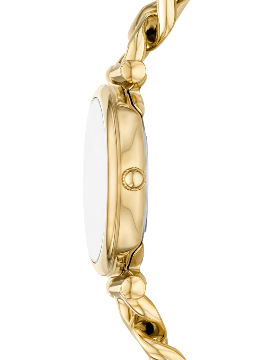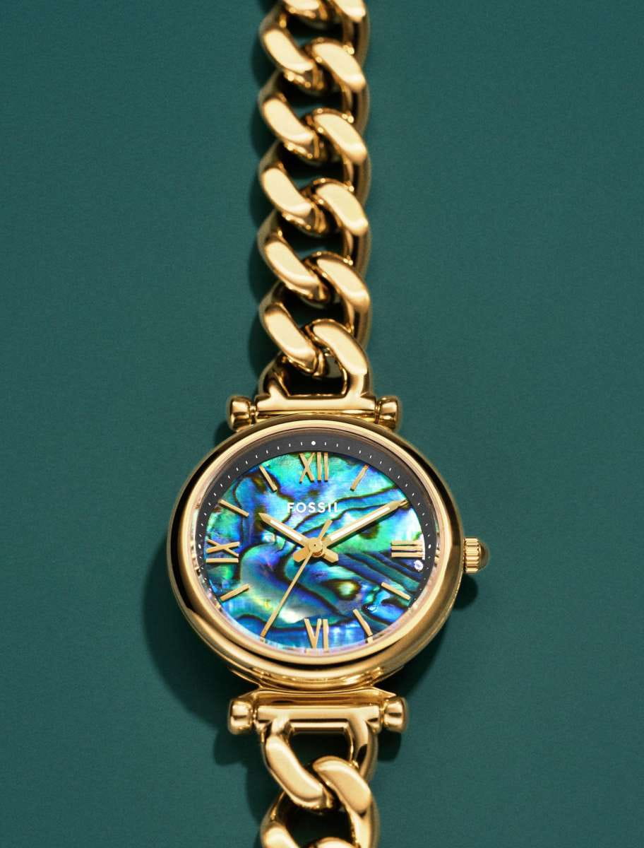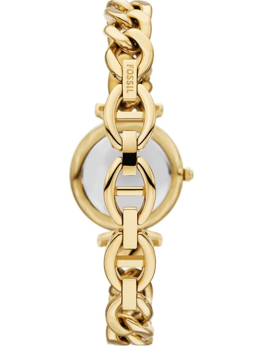 Женские кварцевые часы Fossil — это изящный и яркий аксессуар для повседневного ношения. Модель ES5416 выполнена в круглом корпусе диаметром 28 мм из нержавеющей стали с IP-покрытиемIP-покрытиеМетод ионного напыления. Демонстрирует повышенную устойчивость к истиранию, окислению и химическим веществам. Под воздействием высокого давления и температуры около 1500°C молекулы металла надёжно соединяются с частицами корпуса часов. цвета жёлтого золота. Циферблат комбинированного дизайна оформлен в перламутровых тонах с элементами мультицветной инкрустации, создающими эффект разноцветного блеска. Индексы заменены на декоративные элементы, подчёркивающие уникальный стиль. Циферблат защищён минеральным стекломМинеральное стеклоМинеральное стекло представляет собой искусственно выращенный минерал кварца. Такое стекло отличается особой устойчивостью к повреждениям и царапинам. Уступает по некоторым качествам сапфировому стеклу.. Часы оснащены стальным браслетом с IP-покрытиемIP-покрытиеМетод ионного напыления. Демонстрирует повышенную устойчивость к истиранию, окислению и химическим веществам. Под воздействием высокого давления и температуры около 1500°C молекулы металла надёжно соединяются с частицами корпуса часов. цвета жёлтого золота на ювелирной застёжке. Водонепроницаемость 50 м позволяет использовать часы в повседневных условиях. Идеальный выбор для тех, кто ценит американское качество и женственный дизайн.