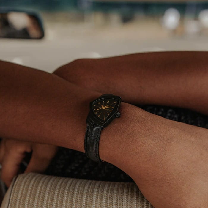 Излучайте сияние благодаря дизайну, сочетающему два оттенка. Серия в черных и золотых цветах, воплощающая загадочный и роскошный дух Голливуда. Блестящий и зернистый эффекты рождают игру контрастов: эта капсульная серия является идеальным определением киноэкрана.