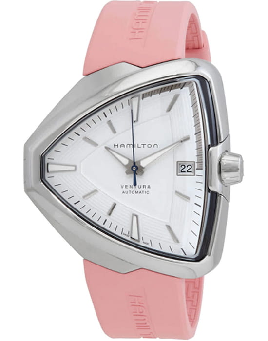 Мужские швейцарские механические часы с автоподзаводом Hamilton Ventura Elvis80 Auto H24505011 посвящены легендарному бунтарю и горячему поклоннику часов Ventura – Элвису Пресли. Корпус диаметром 42.5 мм выполнен из нержавеющей стали, обеспечивая прочность и долговечность. Часы оснащены автоматическим калибром H-10, обеспечивающей запас хода до 80 часов и стабильную точность. Стильный циферблат со стрелками и метками с люминесцентным покрытиемЛюминесцентное покрытиеПозволяет считывать показания времени в темноте. Производители наносят на стрелки, часовые индексы, безель или поверхность циферблата светонакопительный состав, дающий холодное свечение. Super-LumiNova® придаёт модели уникальный характер и стиль, а его поверхность защищена сапфировым стекломСапфировое стеклоПрочный и надёжный материал из кристалла сапфира синтетического происхождения, характеризующийся особой твёрдостью и устойчивостью к царапинам и повреждениям., устойчивым к царапинам. Ремешок из каучука со стандартной застежкой обеспечивает комфортное ношение и надёжную фиксацию на запястье. Водозащита до 50 метров (5 бар) делает часы подходящими для повседневного использования и защищает их от случайных брызг и дождя.