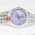 Синий циферблат украшен изящными линиями, создающими иллюзию движения, а сапфировое стеклоСапфировое стеклоПрочный и надёжный материал из кристалла сапфира синтетического происхождения, характеризующийся особой твёрдостью и устойчивостью к царапинам и повреждениям. защищает дисплей от царапин, сохраняя его идеальный вид. Часы оснащены точным кварцевым механизмом, гарантирующим надежность и стабильность хода.