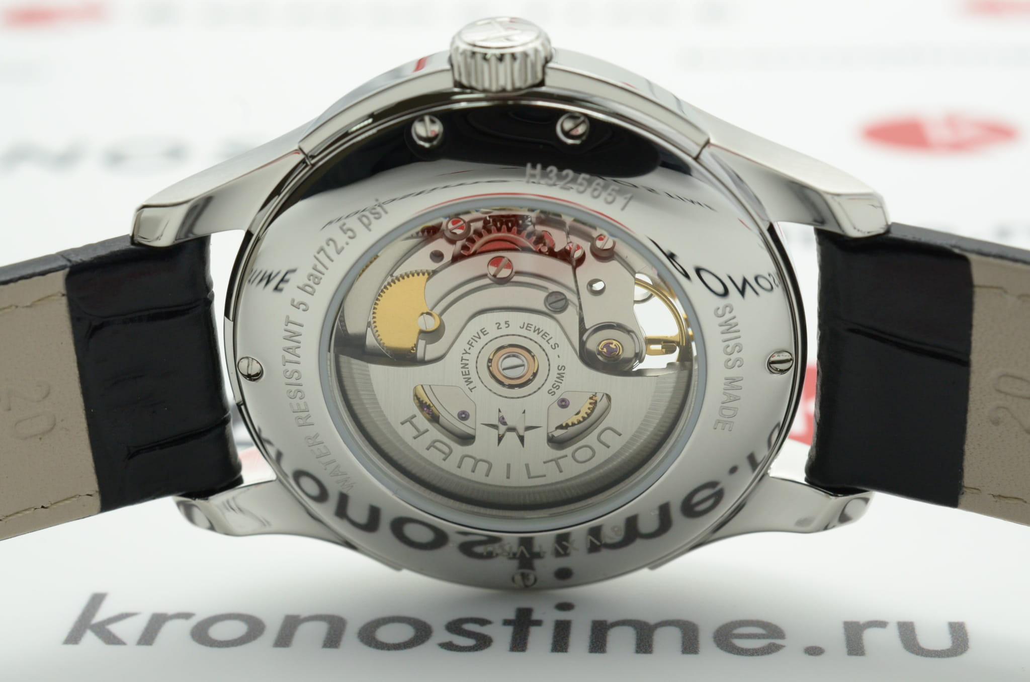 Мужские механические швейцарские часы Hamilton Jazzmaster Open Heart Auto H32565735, автоматический механизм с высокой точностью. Сапфировое стеклоСапфировое стеклоПрочный и надёжный материал из кристалла сапфира синтетического происхождения, характеризующийся особой твёрдостью и устойчивостью к царапинам и повреждениям. устойчивое к появлению царапин, обладающее высокой прозрачностью. Класс водозащиты: 50 метров, позволит защитить корпус от случайных брызг или капель дождя. Корпус часов изготовлен из нержавеющей стали. Стрелки с люминесцентным покрытиемЛюминесцентное покрытиеПозволяет считывать показания времени в темноте. Производители наносят на стрелки, часовые индексы, безель или поверхность циферблата светонакопительный состав, дающий холодное свечение..
