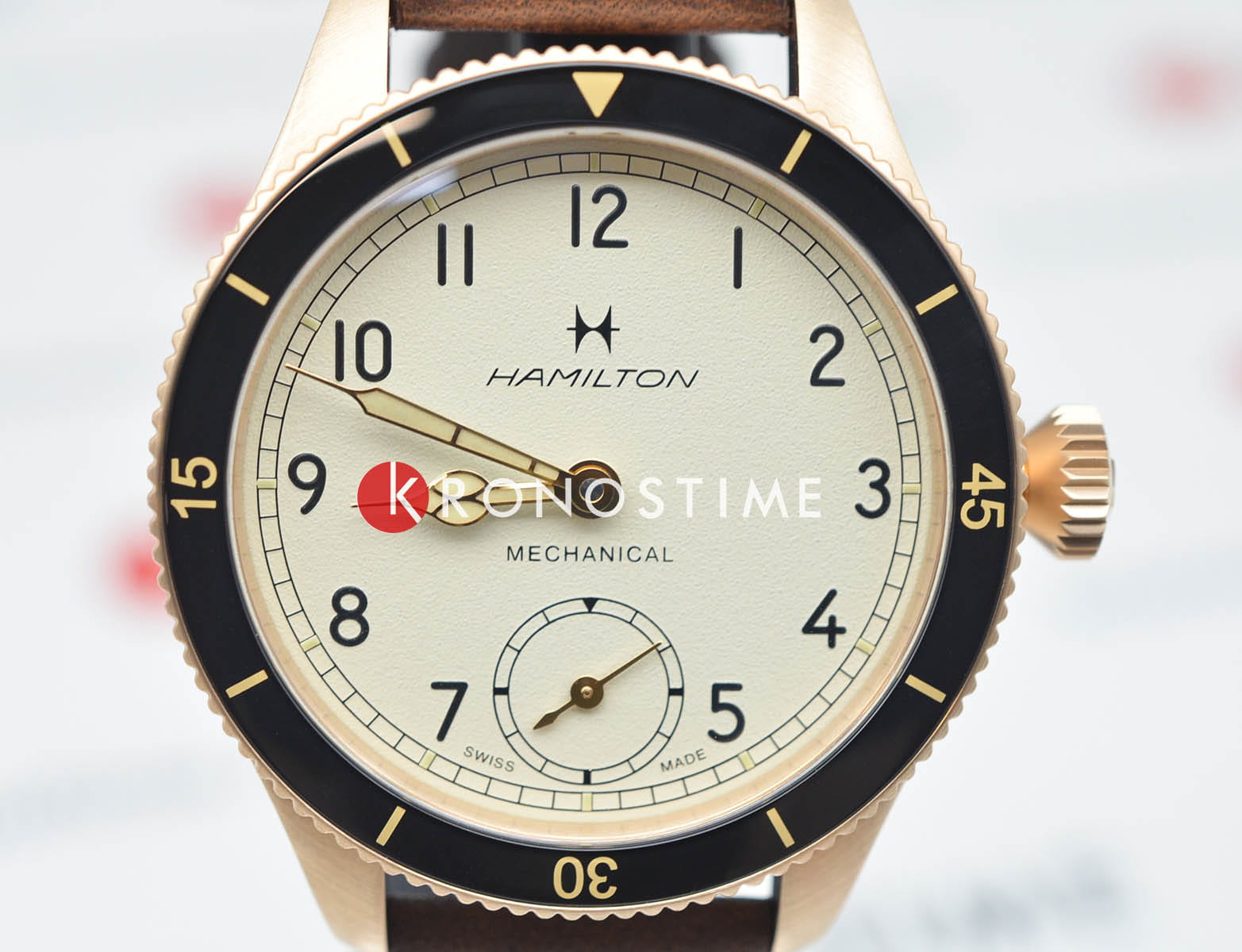 Мужские стильные швейцарские часы Hamilton Khaki Aviation Pilot Pioneer Mechanical 43mm H76709510. Корпус из бронзы диаметром 43 мм с изысканным дизайном и увеличенной толщиной 13 мм подчеркивает элегантность модели, поворотный безельБезельВнешний ободок, закрепляющий стекло. В спортивных часах так называется поворотное кольцо с делениями на циферблате, выполняет роль таймера – замеряет отрезки времени на шкале. Неподвижный безель – элемент декора. Однонаправленно вращающийся безель на дайверских часах позволяет фиксировать моменты погружения и выныривания на поверхность. изготовлен из титана, а сапфировое стеклоСапфировое стеклоПрочный и надёжный материал из кристалла сапфира синтетического происхождения, характеризующийся особой твёрдостью и устойчивостью к царапинам и повреждениям. с антибликовым покрытиемАнтибликовое покрытиеСлой оксида металла в 0,13-0,3 микрон, благодаря которому стекло часов не бликует и не отражает свет. Антибликовое покрытие уменьшает отражение света в 10 раз, обеспечивая отличную читаемость показателей циферблата. обеспечивает превосходную читаемость лаконичного циферблата со стрелками с люминесцентным покрытиемЛюминесцентное покрытиеПозволяет считывать показания времени в темноте. Производители наносят на стрелки, часовые индексы, безель или поверхность циферблата светонакопительный состав, дающий холодное свечение. Super-LumiNova®. Механизм с ручным заводом ETA 6498-1, обеспечивающей запас хода 50 часов. Изысканный ремешок выполнен из кожи со стандартной застежкой, гарантирующей комфортное ношение и безопасность. Водонепроницаемость часов достигает 10 атмосфер (100 метров), делающая их подходящими для повседневного использования и активного отдыха. Это сочетание высокой прочности, точности и изысканного дизайна для уверенных в себе мужчин.