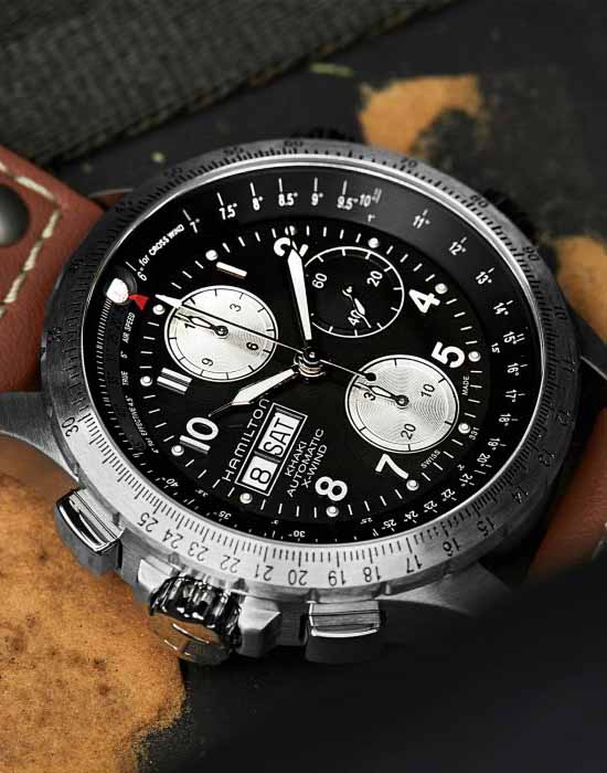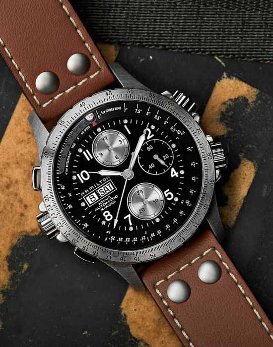 Инновации, рассчитанный риск и точность. Именно этими крайне важными для пилотов качествами наделены все часы Hamilton. Впервые оснастившая часы функция расчета угла сноса, представленная в моделях Khaki X-Wind, позволяет пилоту во время полета высчитать и отметить поправку на ветер. Техничный дизайн и автоматический механизм, в полной мере соответствующий требованиям поклонников авиации, превращают часы в идеального ассистента для повседневной жизни. Представлены в фильме «День независимости: Возрождение» (2016) на Лиаме Хемсворте в роли Джейка Моррисона.