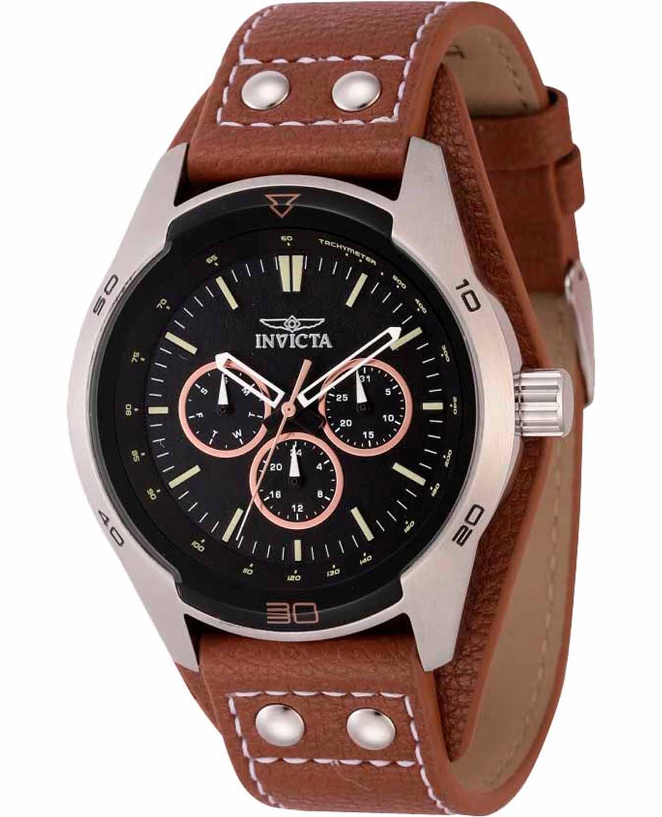 Мужские наручные часы Invicta Specialty IN44836 из коллекции Specialty сочетают в себе спортивный дизайн и надежность современных технологий. Модель обладает круглым корпусом диаметром 44 мм, выполненным из нержавеющей стали, что обеспечивает высокую устойчивость к внешним воздействиям . Ремешок часов выполнен из черной кожи с классической застежкой, гарантируя комфортное ношение в течение дня . Циферблат дополнен метками в виде штрихов и светящимися стрелками с люминесцентным покрытиемЛюминесцентное покрытиеПозволяет считывать показания времени в темноте. Производители наносят на стрелки, часовые индексы, безель или поверхность циферблата светонакопительный состав, дающий холодное свечение. Tritnite, которые обеспечивают отличную видимость даже в темноте после кратковременной зарядки светом . 12-ти и 24-х часовой формат времени, дата и день недели вынесены на отдельные циферблаты. Для защиты используется минеральное стеклоМинеральное стеклоМинеральное стекло представляет собой искусственно выращенный минерал кварца. Такое стекло отличается особой устойчивостью к повреждениям и царапинам. Уступает по некоторым качествам сапфировому стеклу., которое обеспечивает прочность и устойчивость к царапинам . Часы оснащены кварцевым механизмом калибра Seiko TMI VH63, что гарантирует точность хода без необходимости подзаводки . Водонепроницаемость часов достигает 30 метров, что позволяет использовать их во время мытья рук или плавания, однако не рекомендуется для глубоководного дайвинга . Сочетание практичности, надежности и стильного дизайна делает эту модель универсальным аксессуаром как для повседневной носки, так и для занятий спортом .