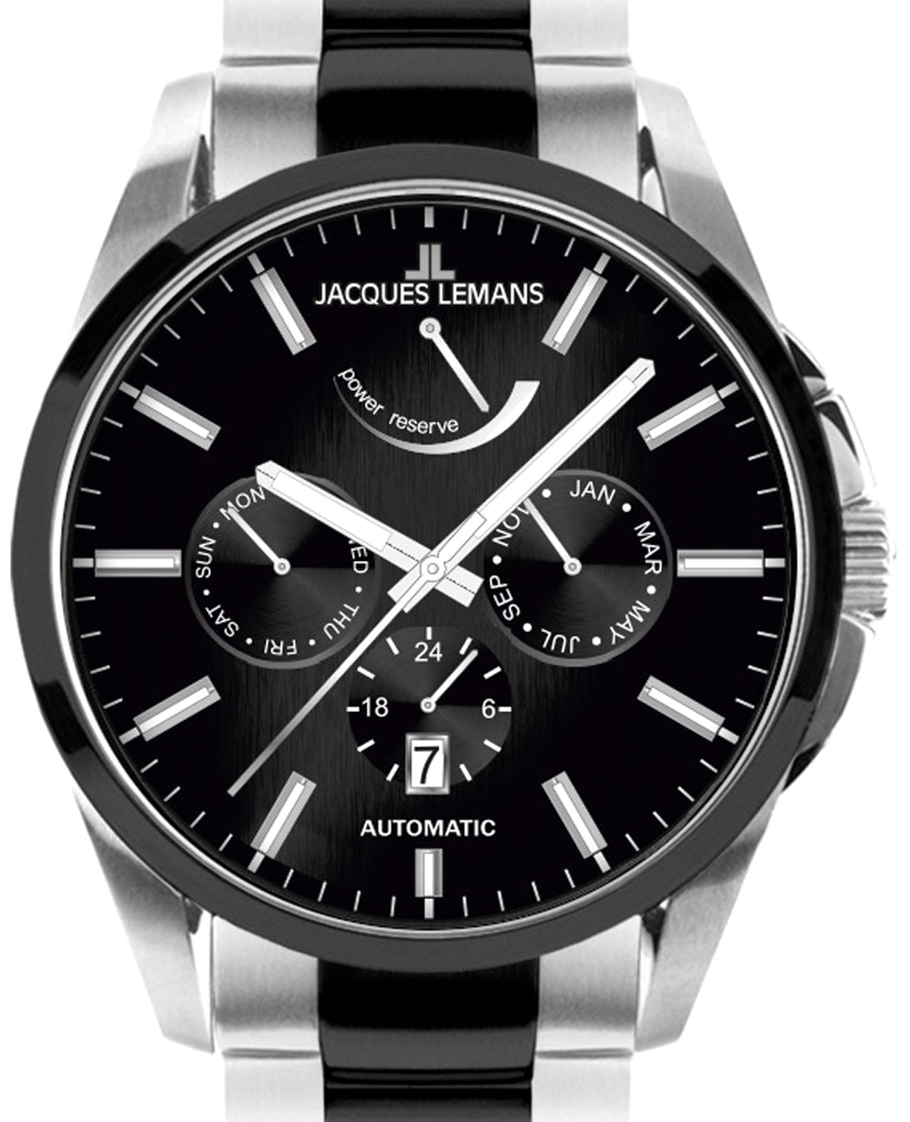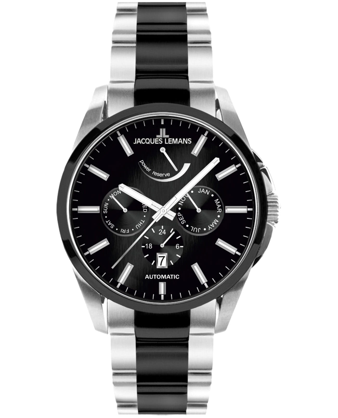 Мужские механические часы с автоподзаводом Jacques Lemans 1-2204E – лаконичная красота и изысканная элегантность. Оригинальная модель с классическим оформлением станет превосходным завершением образа, наделив его индивидуальным характером. Корпус выполнен из нержавеющей стали, диаметром 44 мм, что обеспечивает долговечность и утончённый внешний вид. Минеральное стеклоМинеральное стеклоМинеральное стекло представляет собой искусственно выращенный минерал кварца. Такое стекло отличается особой устойчивостью к повреждениям и царапинам. Уступает по некоторым качествам сапфировому стеклу. с сапфировым напылением защищает циферблат от царапин. Стальной браслет с частичным PVD-покрытиемPVDУльтратонкое покрытие наносится в технике вакуумного напыления, сочетает в себе нитрид титана особой прочности со слоем золота или оксида хрома. Несёт в себе декоративную или защитную функцию. на раскладной застёжкеРаскладная застёжкаТакой тип застёжки используется только на браслетах из металла. Она никогда не раскрывается полностью, происходит разделение на 2 и более частей. Раскладывающая застёжка снизит вероятность потери часов к минимуму. обеспечивает комфортное ношение. Неподвижный безельБезельВнешний ободок, закрепляющий стекло. В спортивных часах так называется поворотное кольцо с делениями на циферблате, выполняет роль таймера – замеряет отрезки времени на шкале. Неподвижный безель – элемент декора. Однонаправленно вращающийся безель на дайверских часах позволяет фиксировать моменты погружения и выныривания на поверхность. с PVD-покрытиемPVDУльтратонкое покрытие наносится в технике вакуумного напыления, сочетает в себе нитрид титана особой прочности со слоем золота или оксида хрома. Несёт в себе декоративную или защитную функцию. черного цвета. Водозащита 100 метров позволит плавать, нырять и заниматься другими водными видами спорта. Стрелки и метки с люминесцентным покрытиемЛюминесцентное покрытиеПозволяет считывать показания времени в темноте. Производители наносят на стрелки, часовые индексы, безель или поверхность циферблата светонакопительный состав, дающий холодное свечение. позволяющие легко определять время даже в темноте. Окошко даты находится в положении 6 часов. Индикатор 24-х часов, календарь недели и месяцев вынесены на отдельные циферблаты. Индикация запаса хода в положении 12 часов. Рифленая заводная головка с защитой. Это аксессуар для мужчины, который ценит классический стиль и функциональность.
