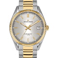 Мужские наручные часы, выпущенные в честь 50-летия компании Jacques Lemans. Кварцевый механизм с высокой точностью. Минеральное стеклоМинеральное стеклоМинеральное стекло представляет собой искусственно выращенный минерал кварца. Такое стекло отличается особой устойчивостью к повреждениям и царапинам. Уступает по некоторым качествам сапфировому стеклу. устойчивое к появлению царапин, обладающее высокой прозрачностью. Окошко даты расположилось на трех часах. Стрелки и метки с люминесцентным покрытиемЛюминесцентное покрытиеПозволяет считывать показания времени в темноте. Производители наносят на стрелки, часовые индексы, безель или поверхность циферблата светонакопительный состав, дающий холодное свечение.. БезельБезельВнешний ободок, закрепляющий стекло. В спортивных часах так называется поворотное кольцо с делениями на циферблате, выполняет роль таймера – замеряет отрезки времени на шкале. Неподвижный безель – элемент декора. Однонаправленно вращающийся безель на дайверских часах позволяет фиксировать моменты погружения и выныривания на поверхность. с PVD-покрытиемPVDУльтратонкое покрытие наносится в технике вакуумного напыления, сочетает в себе нитрид титана особой прочности со слоем золота или оксида хрома. Несёт в себе декоративную или защитную функцию.. Класс водозащиты: 100 метров, позволит плавать, нырять и заниматься другими водными видами спорта. Корпус из нержавеющей стали. Браслет часов изготовлен из нержавеющей стали с частичным PVD-покрытиемPVDУльтратонкое покрытие наносится в технике вакуумного напыления, сочетает в себе нитрид титана особой прочности со слоем золота или оксида хрома. Несёт в себе декоративную или защитную функцию..