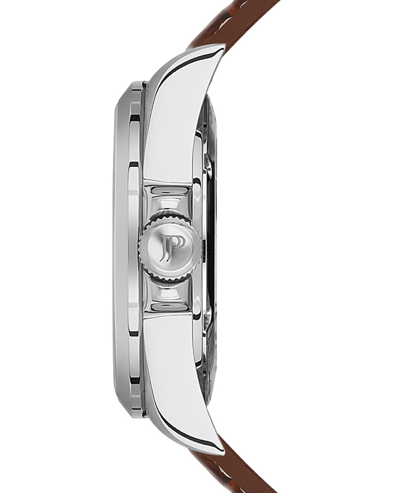 Швейцарские механические мужские часы с автоподзаводом Jacques Philippe Victus JPAGS551123. Сапфировое стеклоСапфировое стеклоПрочный и надёжный материал из кристалла сапфира синтетического происхождения, характеризующийся особой твёрдостью и устойчивостью к царапинам и повреждениям. устойчивое к появлению царапин, обладающее высокой прозрачностью. Корпус часов изготовлен из нержавеющей стали. Метки с люминесцентным покрытиемЛюминесцентное покрытиеПозволяет считывать показания времени в темноте. Производители наносят на стрелки, часовые индексы, безель или поверхность циферблата светонакопительный состав, дающий холодное свечение.. Окошко даты находится в положении 6 часов. Класс водозащиты: 100 метров, позволит плавать, нырять и заниматься другими водными видами спорта. Кожаный ремешок с классической застежкой.