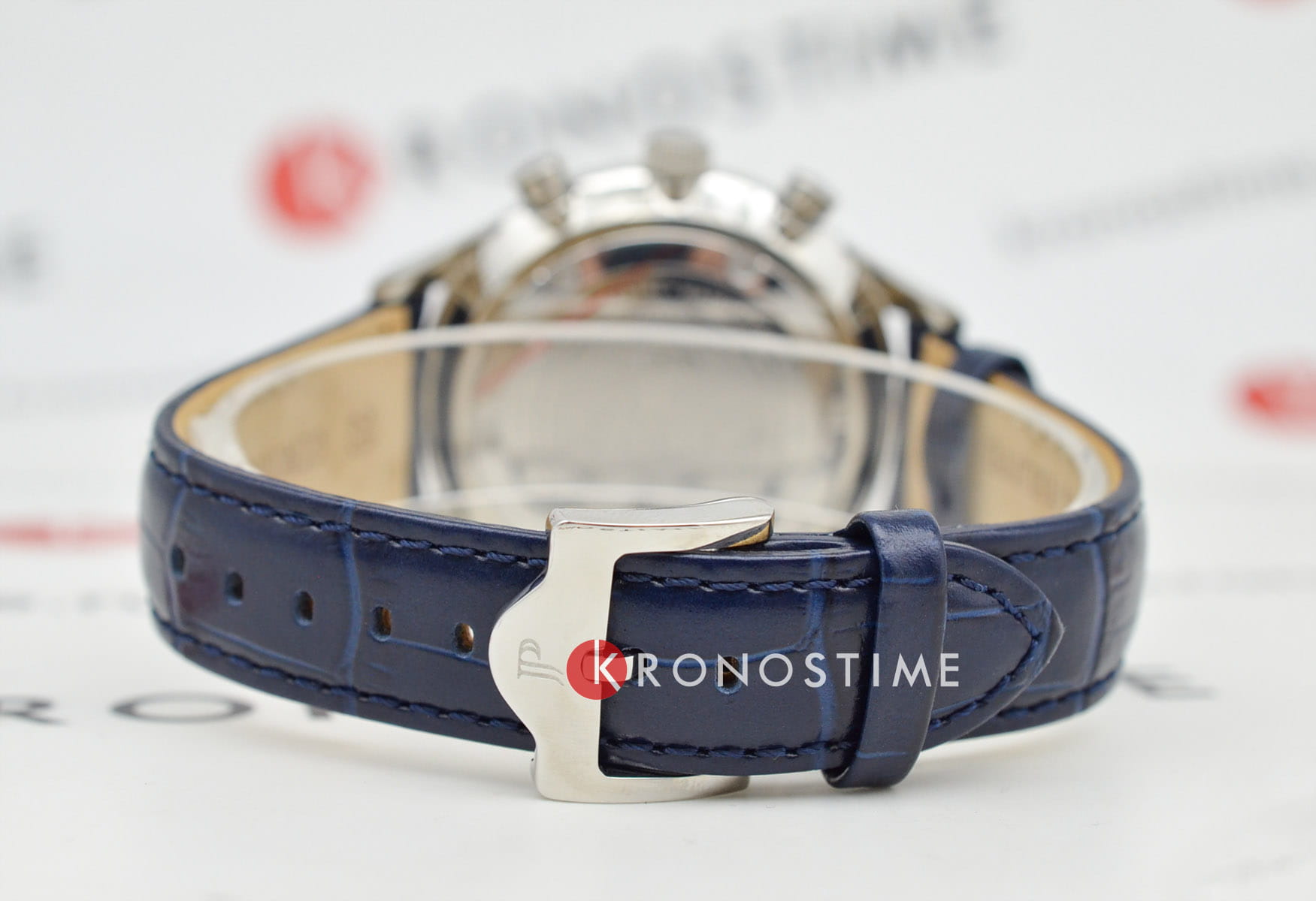 Водозащита 5 ATM защищает часы от брызг и дождя. Кожаный ремешок синего цвета с классической застёжкой обеспечивает комфортное ношение и надёжную фиксацию на запястье.