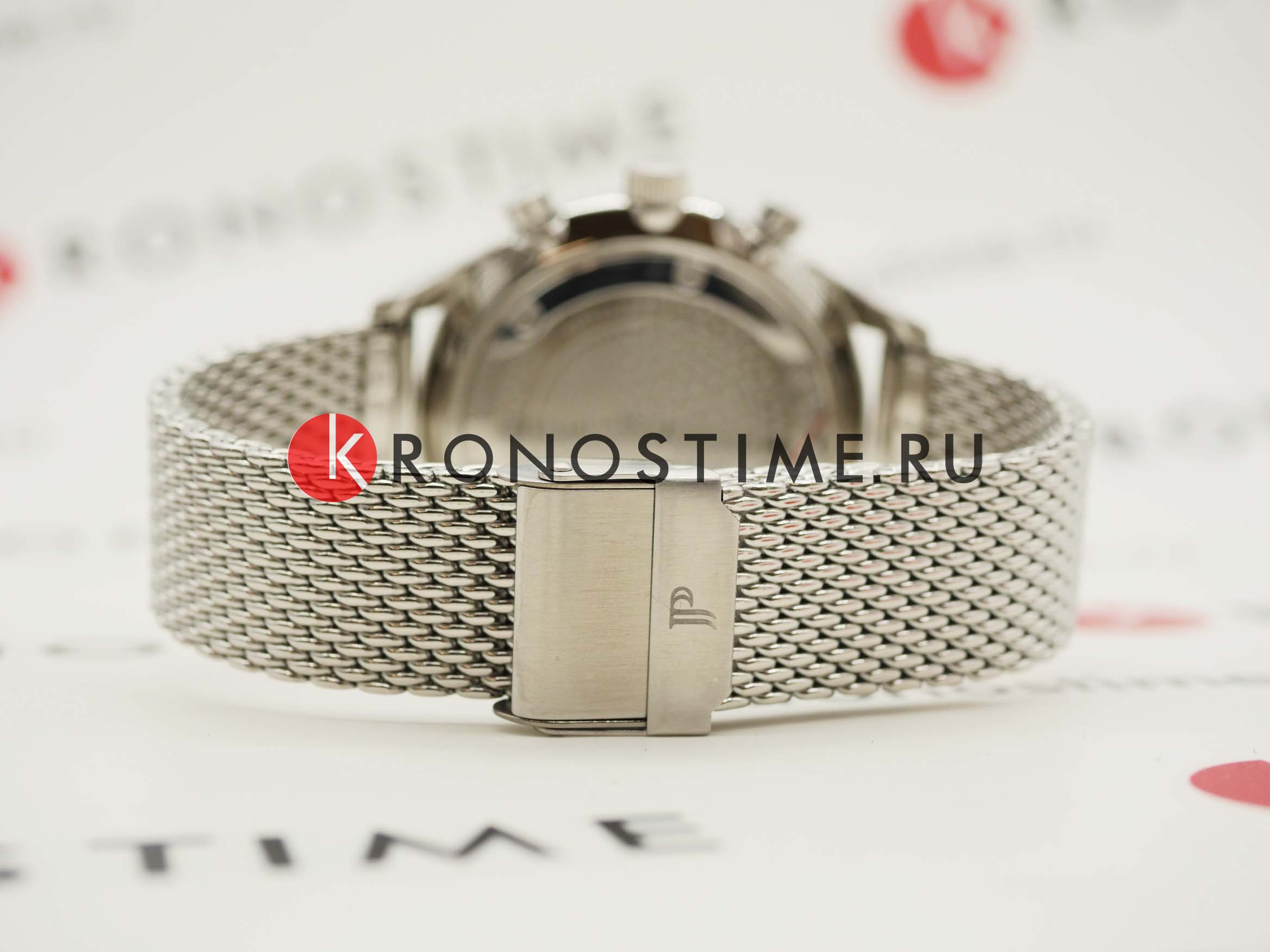 Швейцарские мужские часы-хронографХронографФункция позволяет измерять отрезки времени с особой точностью: часы, минуты, секунды. Верным признаком хронографа является наличие на циферблате 3 дополнительных окошек-счётчиков. Jacques Philippe Gallant JPQGC031216, кварцевый механизм с высокой точностью. Сапфировое стеклоСапфировое стеклоПрочный и надёжный материал из кристалла сапфира синтетического происхождения, характеризующийся особой твёрдостью и устойчивостью к царапинам и повреждениям. устойчивое к появлению царапин, обладающее высокой прозрачностью. Корпус часов изготовлен из нержавеющей стали. На циферблате три дополнительных индикатора. Стрелки с люминесцентным покрытиемЛюминесцентное покрытиеПозволяет считывать показания времени в темноте. Производители наносят на стрелки, часовые индексы, безель или поверхность циферблата светонакопительный состав, дающий холодное свечение.. Окошко даты находится между 4 и 5 часами. Класс водозащиты: 50 метров, позволит защитить корпус от случайных брызг или капель дождя. Стальной браслет миланского плетения на раскладном замкеРаскладной замокДанный вариант застежки используется только на часах с металлическим браслетом. Отличительная особенность такого крепления в том, что длина браслета становится универсальной и вы можете самостоятельно отрегулировать нужный вам размер – застежка просто двигается по браслету часов..