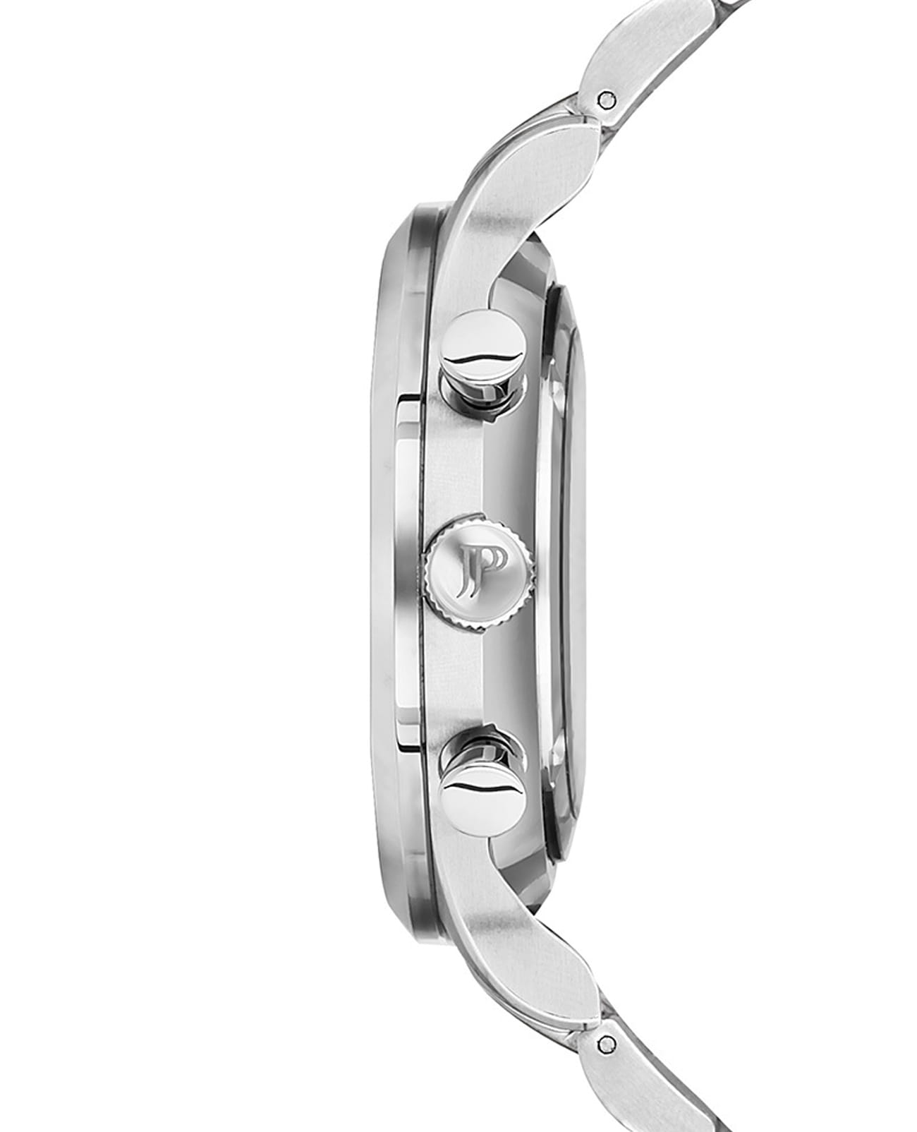 Швейцарские мужские часы-хронографХронографФункция позволяет измерять отрезки времени с особой точностью: часы, минуты, секунды. Верным признаком хронографа является наличие на циферблате 3 дополнительных окошек-счётчиков. Jacques Philippe Gallant JPQGC031336, кварцевый механизм с высокой точностью. Сапфировое стеклоСапфировое стеклоПрочный и надёжный материал из кристалла сапфира синтетического происхождения, характеризующийся особой твёрдостью и устойчивостью к царапинам и повреждениям. устойчивое к появлению царапин, обладающее высокой прозрачностью. Корпус часов изготовлен из нержавеющей стали. На циферблате три дополнительных индикатора. Стрелки с люминесцентным покрытиемЛюминесцентное покрытиеПозволяет считывать показания времени в темноте. Производители наносят на стрелки, часовые индексы, безель или поверхность циферблата светонакопительный состав, дающий холодное свечение.. Окошко даты находится между 4 и 5 часами. Класс водозащиты: 50 метров, позволит защитить корпус от случайных брызг или капель дождя. Стальной браслет на застёжке «бабочка» с кнопкамиЗастёжка "бабочка"Такой вид застёжки дополняется предохранителями, помогающими избежать случайного раскрытия браслета. Обладают изящным исполнением. .