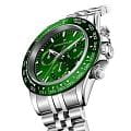Швейцарские наручные часы Jacques Philippe JPQGC7113X6SBG сочетают в себе современный дизайн, надежность и функциональность, это стильные швейцарские часы с функцией хронографаХронографФункция позволяет измерять отрезки времени с особой точностью: часы, минуты, секунды. Верным признаком хронографа является наличие на циферблате 3 дополнительных окошек-счётчиков. и секундомераСекундомерСекундоме́р — прибор, способный измерять интервалы времени с точностью до долей секунды.. Корпус круглой формы диаметром 39 мм выполнен из прочной нержавеющей стали, а безельБезельВнешний ободок, закрепляющий стекло. В спортивных часах так называется поворотное кольцо с делениями на циферблате, выполняет роль таймера – замеряет отрезки времени на шкале. Неподвижный безель – элемент декора. Однонаправленно вращающийся безель на дайверских часах позволяет фиксировать моменты погружения и выныривания на поверхность. с элегантным зеленым IP-покрытиемIP-покрытиеМетод ионного напыления. Демонстрирует повышенную устойчивость к истиранию, окислению и химическим веществам. Под воздействием высокого давления и температуры около 1500°C молекулы металла надёжно соединяются с частицами корпуса часов., а сапфировое стеклоСапфировое стеклоПрочный и надёжный материал из кристалла сапфира синтетического происхождения, характеризующийся особой твёрдостью и устойчивостью к царапинам и повреждениям. надежно защищает зеленый циферблат от царапин и повреждений. Модель оснащена точным кварцевым механизмом RONDA 5030.D-4H, а также дополнительными функциями — тахиметромТахиметрРазмеченная шкала, располагается на ободке или безеле часов. Тахиметр позволяет рассчитать скорость на определённом участке пути, расстояние измеряется в километрах или милях. и индикатором даты, что делает часы не только стильным аксессуаром, но и практичным помощником на каждый день. Серебристый браслет шириной 20 мм удобно фиксируется на запястье с помощью застежки «бабочка»Застёжка "бабочка"Такой вид застёжки дополняется предохранителями, помогающими избежать случайного раскрытия браслета. Обладают изящным исполнением. . Стрелки имеют люминесцентное покрытиеЛюминесцентное покрытиеПозволяет считывать показания времени в темноте. Производители наносят на стрелки, часовые индексы, безель или поверхность циферблата светонакопительный состав, дающий холодное свечение. для удобства чтения времени в темноте. Водозащита 5 АТМ позволяет не снимать часы при дожде и случайных контактах с водой.