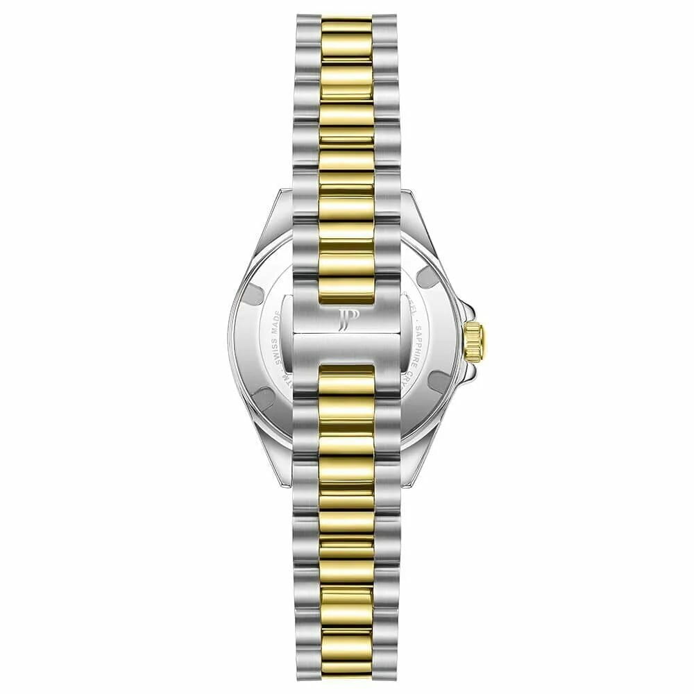 Часы Jacques Philippe JPQLS737388YG из коллекции Infinitum — элегантные женские часы, сочетающие в себе швейцарское качество и современный дизайн. Корпус диаметром 30 мм выполнен из нержавеющей стали, а циферблат защищён сапфировым стекломСапфировое стеклоПрочный и надёжный материал из кристалла сапфира синтетического происхождения, характеризующийся особой твёрдостью и устойчивостью к царапинам и повреждениям.. БезельБезельВнешний ободок, закрепляющий стекло. В спортивных часах так называется поворотное кольцо с делениями на циферблате, выполняет роль таймера – замеряет отрезки времени на шкале. Неподвижный безель – элемент декора. Однонаправленно вращающийся безель на дайверских часах позволяет фиксировать моменты погружения и выныривания на поверхность. с PVD-покрытиемPVDУльтратонкое покрытие наносится в технике вакуумного напыления, сочетает в себе нитрид титана особой прочности со слоем золота или оксида хрома. Несёт в себе декоративную или защитную функцию.. Циферблат инкрустирован кристаллами. Внутри установлен швейцарский кварцевый механизм, обеспечивающий высокую точность хода. Водозащита 100 метров (10 ATM) позволяет использовать часы для плавания и других водных видов спорта. Браслет из нержавеющей стали с PVD-покрытиемPVDУльтратонкое покрытие наносится в технике вакуумного напыления, сочетает в себе нитрид титана особой прочности со слоем золота или оксида хрома. Несёт в себе декоративную или защитную функцию. и застёжкой бабочкаЗастёжка "бабочка"Такой вид застёжки дополняется предохранителями, помогающими избежать случайного раскрытия браслета. Обладают изящным исполнением. обеспечивает комфортное ношение и надёжную фиксацию на запястье. Эти часы идеально подойдут для тех, кто ценит сочетание классического стиля и современных технологий.