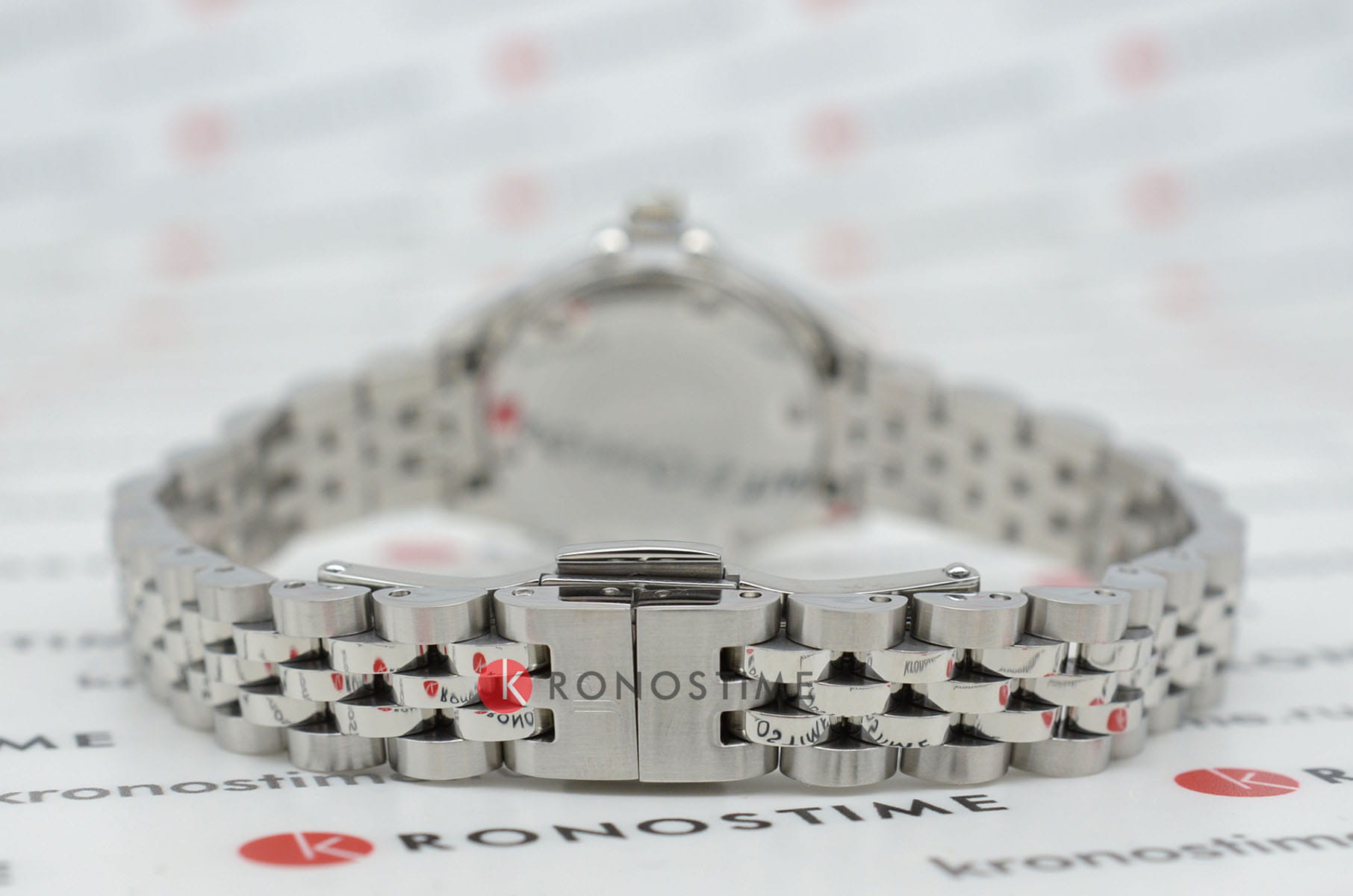 Jacques Philippe JPQLS821326 — женские часы в сдержанном классическом исполнении с акцентом на простоту и надёжность. Корпус диаметром 26 мм выполнен из нержавеющей стали — делает модель универсальной и комфортной в повседневной носке. Циферблат оформлен в светлом металлическом тоне с тонкими стрелками, лаконичными часовыми метками и аккуратным окошком даты в позиции «3 часа». Минималистичный стиль подчёркивает строгость и чистоту дизайна. Поверхность защищена устойчивым к царапинам сапфировым стекломСапфировое стеклоПрочный и надёжный материал из кристалла сапфира синтетического происхождения, характеризующийся особой твёрдостью и устойчивостью к царапинам и повреждениям., которое обеспечивает хорошую читаемость и долговечность. Механизм — точный швейцарский кварц, не требующий подзавода. Он обеспечивает стабильную и бесперебойную работу часов, сохраняя точность в любых условиях. Браслет из нержавеющей стали визуально продолжает корпус и фиксируется на застёжке-бабочке с кнопкамиЗастёжка "бабочка"Такой вид застёжки дополняется предохранителями, помогающими избежать случайного раскрытия браслета. Обладают изящным исполнением. , обеспечивая комфортную посадку. Водозащита до 10 ATM позволяет использовать часы не только в повседневной жизни, но и при активности на воде. Jacques Philippe — это надёжная и универсальная модель для тех, кто ценит швейцарскую точность, простоту и уверенный стиль без лишних деталей.