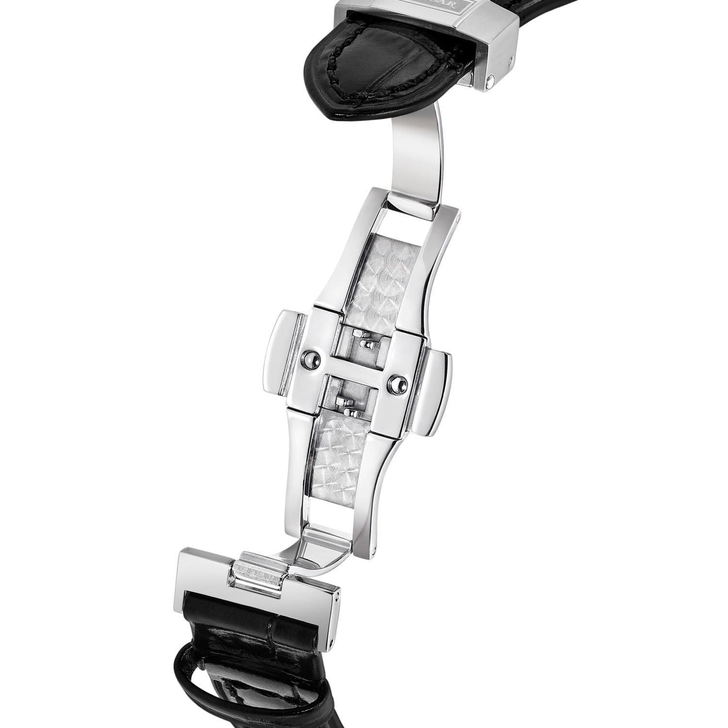 Женские швейцарские часы JAGUAR Automatic Woman J1000/B, механизм — автоподзавод. В часах с автоподзаводом заводная головка практически не используется, что исключает истирание ее материала и материала корпуса. Сапфировое стеклоСапфировое стеклоПрочный и надёжный материал из кристалла сапфира синтетического происхождения, характеризующийся особой твёрдостью и устойчивостью к царапинам и повреждениям. устойчивое к мелким механическим повреждениям. Корпус часов изготовлен из нержавеющей стали. Окошко даты находится в положении 6 часов. Класс водозащиты: 50 метров, позволит защитить корпус от случайных брызг или капель дождя. Кожаный ремешок на застёжке-бабочке с кнопкамиЗастёжка "бабочка"Такой вид застёжки дополняется предохранителями, помогающими избежать случайного раскрытия браслета. Обладают изящным исполнением. .
