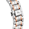 Эти часы защищены сапфировым стекломСапфировое стеклоПрочный и надёжный материал из кристалла сапфира синтетического происхождения, характеризующийся особой твёрдостью и устойчивостью к царапинам и повреждениям., которое не боится мелких механических повреждений, обеспечивая долговечность и надежность механизма. Корпус и браслет выполнены из нержавеющей стали с частичным  PVD-покрытиемPVDУльтратонкое покрытие наносится в технике вакуумного напыления, сочетает в себе нитрид титана особой прочности со слоем золота или оксида хрома. Несёт в себе декоративную или защитную функцию., что придает им прочность и элегантность. БезельБезельВнешний ободок, закрепляющий стекло. В спортивных часах так называется поворотное кольцо с делениями на циферблате, выполняет роль таймера – замеряет отрезки времени на шкале. Неподвижный безель – элемент декора. Однонаправленно вращающийся безель на дайверских часах позволяет фиксировать моменты погружения и выныривания на поверхность. с PVD-покрытиемPVDУльтратонкое покрытие наносится в технике вакуумного напыления, сочетает в себе нитрид титана особой прочности со слоем золота или оксида хрома. Несёт в себе декоративную или защитную функцию..