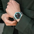 Мужские швейцарские часы Jaguar Executive Diver J860/H — это воплощение швейцарского мастерства и элегантности. Кварцевый швейцарский калибр Ronda 515 является основным элементом этих часов, предназначенных для обеспечения высочайшей точности времени. Сапфировое стеклоСапфировое стеклоПрочный и надёжный материал из кристалла сапфира синтетического происхождения, характеризующийся особой твёрдостью и устойчивостью к царапинам и повреждениям. устойчиво к появлению царапин и повреждений, а также обладает высокой прозрачностью. Корпус и браслет часов изготовлены из нержавеющей стали, что придаёт им прочность и долговечность. Стрелки и метки с люминесцентным покрытиемЛюминесцентное покрытиеПозволяет считывать показания времени в темноте. Производители наносят на стрелки, часовые индексы, безель или поверхность циферблата светонакопительный состав, дающий холодное свечение. позволяют читать время даже в условиях слабого освещения. Часы обладают водозащитой до 200 метров, что делает их пригодными для подводных мероприятий, таких как плавание, ныряние и другие водные виды спорта. БезельБезельВнешний ободок, закрепляющий стекло. В спортивных часах так называется поворотное кольцо с делениями на циферблате, выполняет роль таймера – замеряет отрезки времени на шкале. Неподвижный безель – элемент декора. Однонаправленно вращающийся безель на дайверских часах позволяет фиксировать моменты погружения и выныривания на поверхность. с PVD-покрытиемPVDУльтратонкое покрытие наносится в технике вакуумного напыления, сочетает в себе нитрид титана особой прочности со слоем золота или оксида хрома. Несёт в себе декоративную или защитную функцию. усиливает их устойчивость и добавляет элегантности. Браслет из нержавеющей стали с раскладной застёжкойРаскладная застёжкаТакой тип застёжки используется только на браслетах из металла. Она никогда не раскрывается полностью, происходит разделение на 2 и более частей. Раскладывающая застёжка снизит вероятность потери часов к минимуму. обеспечивает надёжное крепление на запястье.