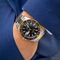 Мужские швейцарские часы Jaguar Executive Diver J863/D. Кварцевый швейцарский калибр Ronda 6003D. Сапфировое стеклоСапфировое стеклоПрочный и надёжный материал из кристалла сапфира синтетического происхождения, характеризующийся особой твёрдостью и устойчивостью к царапинам и повреждениям. устойчивое к мелким механическим повреждениям. Корпус и браслет часов изготовлены из нержавеющей стали. Стрелки и метки с люминесцентным покрытиемЛюминесцентное покрытиеПозволяет считывать показания времени в темноте. Производители наносят на стрелки, часовые индексы, безель или поверхность циферблата светонакопительный состав, дающий холодное свечение.. Окошко даты находится в положении 3 часа. Класс водозащиты: 200 метров, позволит плавать, нырять и заниматься другими водными видами спорта. Стальной браслет с частичным PVD-покрытиемPVDУльтратонкое покрытие наносится в технике вакуумного напыления, сочетает в себе нитрид титана особой прочности со слоем золота или оксида хрома. Несёт в себе декоративную или защитную функцию. на раскладной застёжкеРаскладная застёжкаТакой тип застёжки используется только на браслетах из металла. Она никогда не раскрывается полностью, происходит разделение на 2 и более частей. Раскладывающая застёжка снизит вероятность потери часов к минимуму.. БезельБезельВнешний ободок, закрепляющий стекло. В спортивных часах так называется поворотное кольцо с делениями на циферблате, выполняет роль таймера – замеряет отрезки времени на шкале. Неподвижный безель – элемент декора. Однонаправленно вращающийся безель на дайверских часах позволяет фиксировать моменты погружения и выныривания на поверхность. с PVD-покрытиемPVDУльтратонкое покрытие наносится в технике вакуумного напыления, сочетает в себе нитрид титана особой прочности со слоем золота или оксида хрома. Несёт в себе декоративную или защитную функцию..