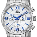 Мужские швейцарские часы-хронографХронографФункция позволяет измерять отрезки времени с особой точностью: часы, минуты, секунды. Верным признаком хронографа является наличие на циферблате 3 дополнительных окошек-счётчиков. Jaguar Acamar J963/1. Кварцевый швейцарский калибр Ronda 5030D. Сапфировое стеклоСапфировое стеклоПрочный и надёжный материал из кристалла сапфира синтетического происхождения, характеризующийся особой твёрдостью и устойчивостью к царапинам и повреждениям. устойчивое к мелким механическим повреждениям. Корпус и браслет часов изготовлены из нержавеющей стали. Окошко даты находится в положении 6 часов. Класс водозащиты: 100 метров, позволит плавать, нырять и заниматься другими водными видами спорта. Стальной браслет на раскладной застёжкеРаскладная застёжкаТакой тип застёжки используется только на браслетах из металла. Она никогда не раскрывается полностью, происходит разделение на 2 и более частей. Раскладывающая застёжка снизит вероятность потери часов к минимуму..