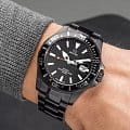 Мужские швейцарские часы Jaguar Executive Diver J989/1. Кварцевый швейцарский калибр Ronda 6003D. Сапфировое стеклоСапфировое стеклоПрочный и надёжный материал из кристалла сапфира синтетического происхождения, характеризующийся особой твёрдостью и устойчивостью к царапинам и повреждениям. устойчивое к мелким механическим повреждениям. Корпус и браслет часов изготовлены из нержавеющей стали с PVD-покрытиемPVDУльтратонкое покрытие наносится в технике вакуумного напыления, сочетает в себе нитрид титана особой прочности со слоем золота или оксида хрома. Несёт в себе декоративную или защитную функцию.. Стрелки и метки с люминесцентным покрытиемЛюминесцентное покрытиеПозволяет считывать показания времени в темноте. Производители наносят на стрелки, часовые индексы, безель или поверхность циферблата светонакопительный состав, дающий холодное свечение.. Окошко даты находится в положении 3 часа. Класс водозащиты: 200 метров, позволит плавать, нырять и заниматься другими водными видами спорта. Стальной браслет на раскладной застёжкеРаскладная застёжкаТакой тип застёжки используется только на браслетах из металла. Она никогда не раскрывается полностью, происходит разделение на 2 и более частей. Раскладывающая застёжка снизит вероятность потери часов к минимуму.. БезельБезельВнешний ободок, закрепляющий стекло. В спортивных часах так называется поворотное кольцо с делениями на циферблате, выполняет роль таймера – замеряет отрезки времени на шкале. Неподвижный безель – элемент декора. Однонаправленно вращающийся безель на дайверских часах позволяет фиксировать моменты погружения и выныривания на поверхность. с PVD-покрытиемPVDУльтратонкое покрытие наносится в технике вакуумного напыления, сочетает в себе нитрид титана особой прочности со слоем золота или оксида хрома. Несёт в себе декоративную или защитную функцию..