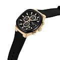 Мужские кварцевые часы Kenneth Cole KCWGO0059602 — это стильный и функциональный аксессуар с современным дизайном. Корпус размером 43 мм выполнен из нержавеющей стали с IP-покрытиемIP-покрытиеМетод ионного напыления. Демонстрирует повышенную устойчивость к истиранию, окислению и химическим веществам. Под воздействием высокого давления и температуры около 1500°C молекулы металла надёжно соединяются с частицами корпуса часов. золотого и чёрного цвета, придающим модели спортивный характер. Циферблат чёрного цвета оформлен метками в виде штрихов и дополнен функциями хронографаХронографФункция позволяет измерять отрезки времени с особой точностью: часы, минуты, секунды. Верным признаком хронографа является наличие на циферблате 3 дополнительных окошек-счётчиков. и индикации даты. Стрелки и метки оснащены люминесцентным покрытиемЛюминесцентное покрытиеПозволяет считывать показания времени в темноте. Производители наносят на стрелки, часовые индексы, безель или поверхность циферблата светонакопительный состав, дающий холодное свечение., обеспечивающим хорошую читаемость в темноте. Циферблат защищён минеральным стекломМинеральное стеклоМинеральное стекло представляет собой искусственно выращенный минерал кварца. Такое стекло отличается особой устойчивостью к повреждениям и царапинам. Уступает по некоторым качествам сапфировому стеклу.. Часы оснащены комбинированным ремешком из силикона и нейлона чёрного цвета с классической пряжкой. Водонепроницаемость 50 м позволяет использовать часы для плавания и повседневного ношения. Надёжный выбор для тех, кто ценит выносливость, стиль и функциональность.