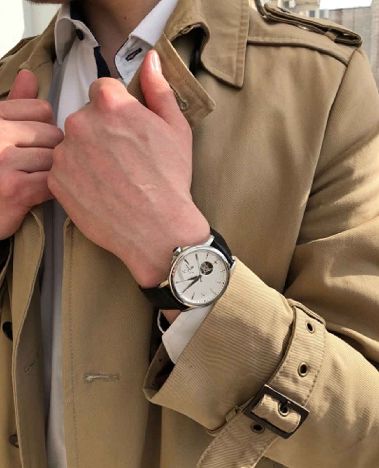 Мужские механические швейцарские часы с автоподзаводом LDuchen Supernova D 154.11.33, кварцевый механизм с высокой точностью. Сапфировое стеклоСапфировое стеклоПрочный и надёжный материал из кристалла сапфира синтетического происхождения, характеризующийся особой твёрдостью и устойчивостью к царапинам и повреждениям. устойчивое к появлению царапин, обладающее высокой прозрачностью. Корпус часов выполнен из нержавеющей стали. Класс водозащиты: 50 метров, позволит защитить корпус от случайных брызг или капель дождя. Кожаный ремешок на раскладной застёжкеРаскладная застёжкаТакой тип застёжки используется только на браслетах из металла. Она никогда не раскрывается полностью, происходит разделение на 2 и более частей. Раскладывающая застёжка снизит вероятность потери часов к минимуму..