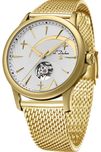 Мужские механические наручные часы с автоподзаводом LDuchen Spacematic D 154.21.33 M. Корпус изготовлен из стали с PVD-покрытиемPVDУльтратонкое покрытие наносится в технике вакуумного напыления, сочетает в себе нитрид титана особой прочности со слоем золота или оксида хрома. Несёт в себе декоративную или защитную функцию.. Сапфировое стеклоСапфировое стеклоПрочный и надёжный материал из кристалла сапфира синтетического происхождения, характеризующийся особой твёрдостью и устойчивостью к царапинам и повреждениям., выпуклое с обеих сторон, внутреннее антибликовое покрытие. Водозащита: 50 метров, позволит защитить корпус от случайных брызг или капель дождя. Метки в виде штрихов. Рифленая заводная головка. Удобный и надежный стальной браслет с PVD-покрытиемPVDУльтратонкое покрытие наносится в технике вакуумного напыления, сочетает в себе нитрид титана особой прочности со слоем золота или оксида хрома. Несёт в себе декоративную или защитную функцию. миланского плетения с регулируемой застежкой.