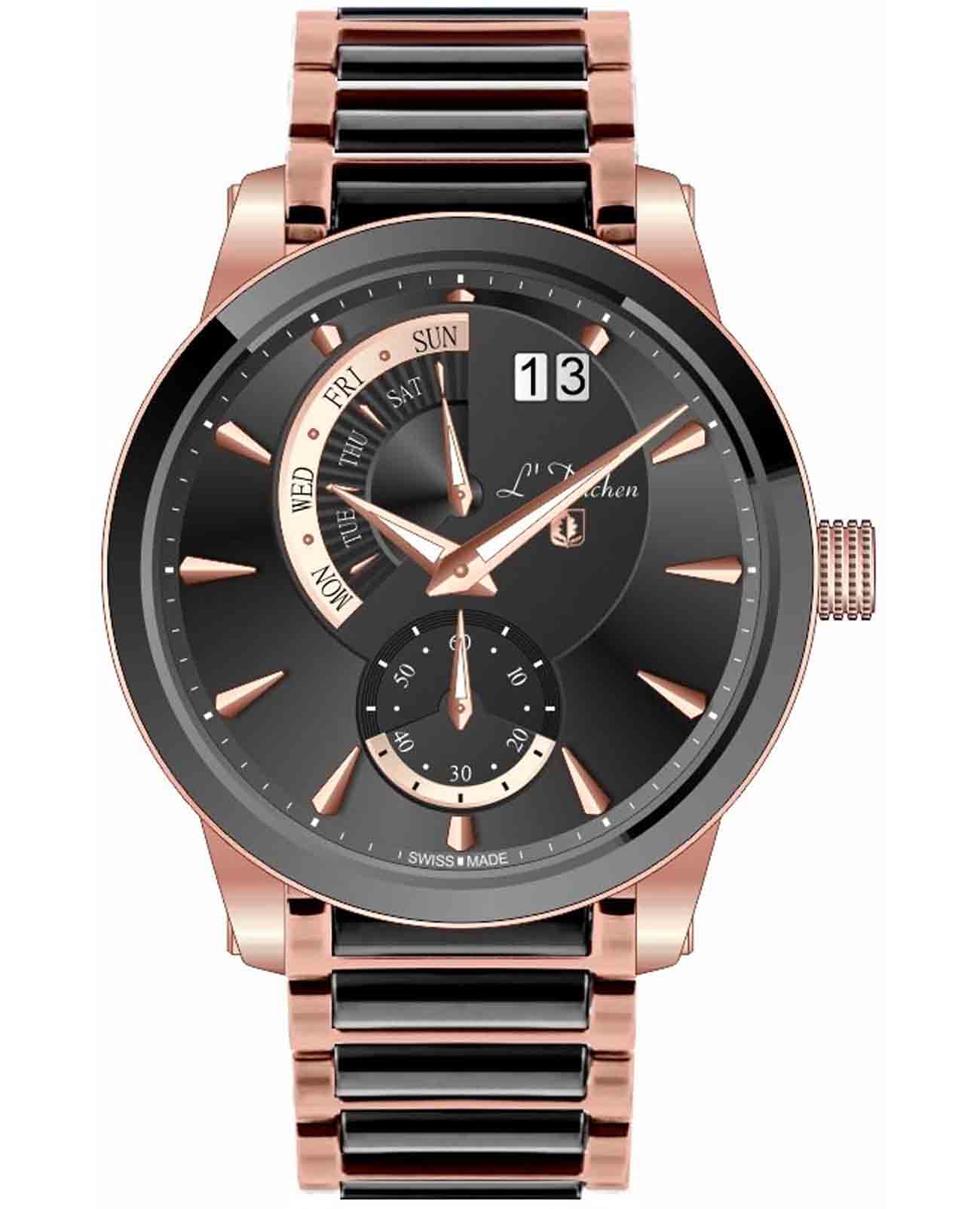 Мужские швейцарские часы L'Duchen Aerostat D 237.40.31, кварцевый механизм с высокой точностью. Сапфировое стеклоСапфировое стеклоПрочный и надёжный материал из кристалла сапфира синтетического происхождения, характеризующийся особой твёрдостью и устойчивостью к царапинам и повреждениям. устойчивое к появлению царапин, обладающее высокой прозрачностью. Корпус часов выполнен из нержавеющей стали с PVD-покрытиемPVDУльтратонкое покрытие наносится в технике вакуумного напыления, сочетает в себе нитрид титана особой прочности со слоем золота или оксида хрома. Несёт в себе декоративную или защитную функцию.. БезельБезельВнешний ободок, закрепляющий стекло. В спортивных часах так называется поворотное кольцо с делениями на циферблате, выполняет роль таймера – замеряет отрезки времени на шкале. Неподвижный безель – элемент декора. Однонаправленно вращающийся безель на дайверских часах позволяет фиксировать моменты погружения и выныривания на поверхность. из керамики. Стрелки с люминесцентным покрытиемЛюминесцентное покрытиеПозволяет считывать показания времени в темноте. Производители наносят на стрелки, часовые индексы, безель или поверхность циферблата светонакопительный состав, дающий холодное свечение.. Класс водозащиты: 100 метров, позволит плавать, нырять и заниматься другими водными видами спорта. Стальной браслет с PVD-покрытиемPVDУльтратонкое покрытие наносится в технике вакуумного напыления, сочетает в себе нитрид титана особой прочности со слоем золота или оксида хрома. Несёт в себе декоративную или защитную функцию. и керамическими вставками на застёжке «бабочка» с кнопкамиЗастёжка "бабочка"Такой вид застёжки дополняется предохранителями, помогающими избежать случайного раскрытия браслета. Обладают изящным исполнением. .