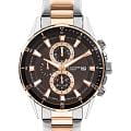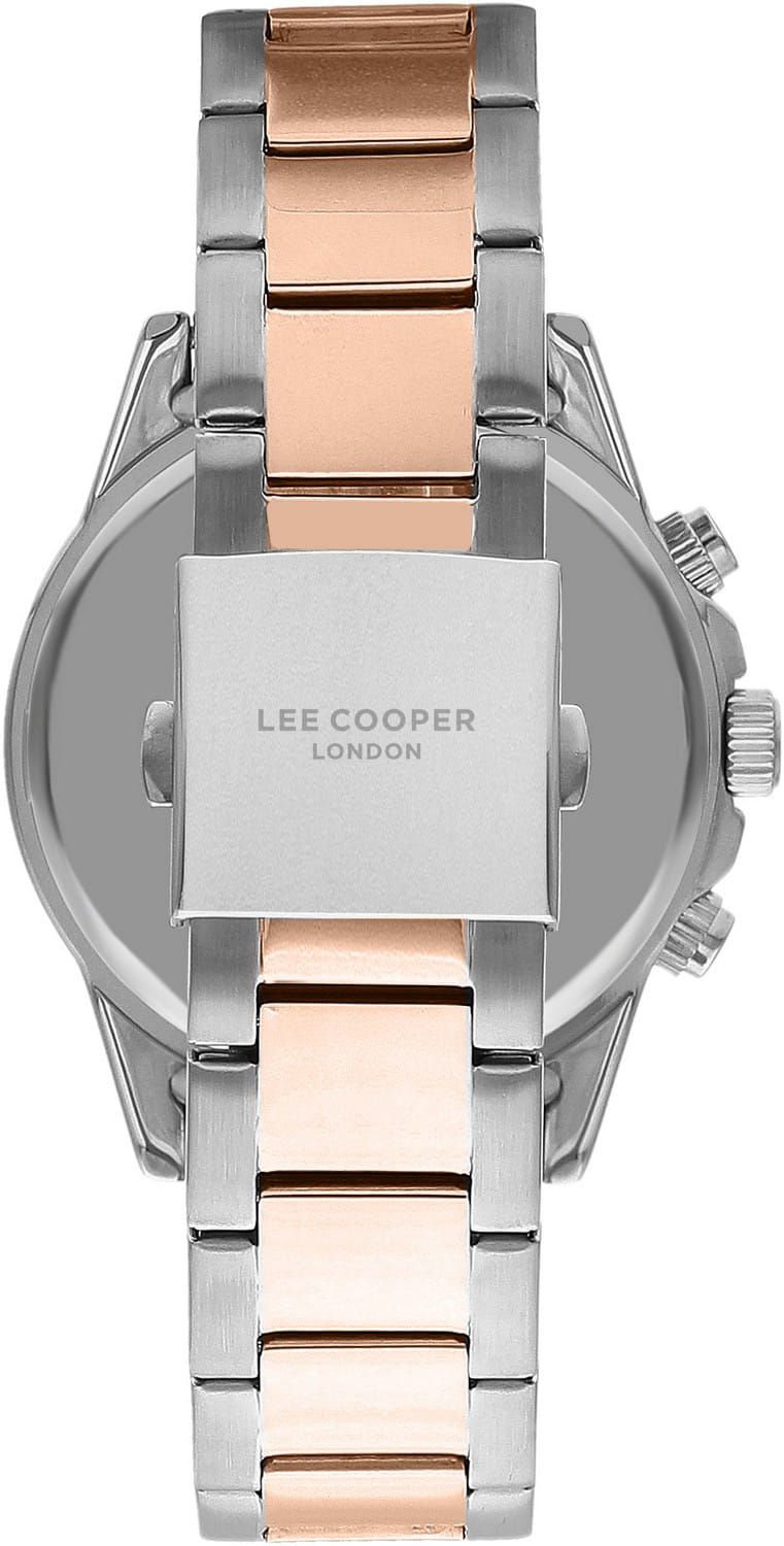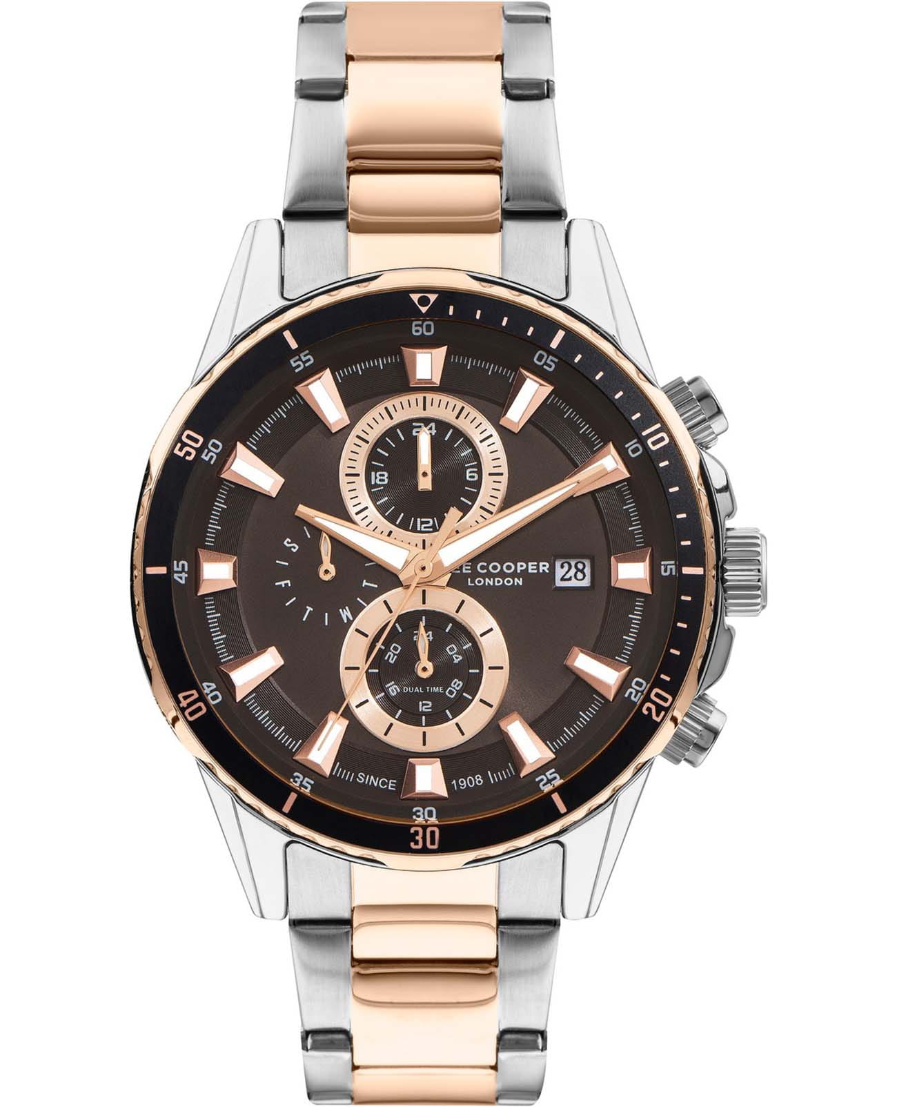 Мужские кварцевые часы Lee Cooper LC07627.540 — это мультифункциональный аксессуар с лаконичным дизайном. Корпус диаметром 46 мм выполнен из суперметалла. Безель с IP-покрытиемIP-покрытиеМетод ионного напыления. Демонстрирует повышенную устойчивость к истиранию, окислению и химическим веществам. Под воздействием высокого давления и температуры около 1500°C молекулы металла надёжно соединяются с частицами корпуса часов. в двухцветном исполнении — чёрном и розовом золоте. Циферблат коричневого цвета оформлен индексами и дополнен окошками даты, дня недели и 24-часового индикатора. Циферблат защищён минеральным стекломМинеральное стеклоМинеральное стекло представляет собой искусственно выращенный минерал кварца. Такое стекло отличается особой устойчивостью к повреждениям и царапинам. Уступает по некоторым качествам сапфировому стеклу.. Стрелки и метки с люминесцентным покрытиемЛюминесцентное покрытиеПозволяет считывать показания времени в темноте. Производители наносят на стрелки, часовые индексы, безель или поверхность циферблата светонакопительный состав, дающий холодное свечение., обеспечивающим хорошую читаемость в темноте. Часы оснащены двухцветным стальным браслетом с IP-покрытиемIP-покрытиеМетод ионного напыления. Демонстрирует повышенную устойчивость к истиранию, окислению и химическим веществам. Под воздействием высокого давления и температуры около 1500°C молекулы металла надёжно соединяются с частицами корпуса часов. на раскладной застёжкеРаскладная застёжкаТакой тип застёжки используется только на браслетах из металла. Она никогда не раскрывается полностью, происходит разделение на 2 и более частей. Раскладывающая застёжка снизит вероятность потери часов к минимуму.. Водонепроницаемость 50 м позволяет использовать часы для плавания и повседневного ношения. Универсальный выбор для тех, кто ценит функциональность и стиль.
