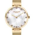 Женские часы Lee Cooper LC07806.120 выполнены в классическом стиле и сочетают строгий дизайн с надёжным механизмом. Модель оснащена кварцевым механизмом, обеспечивающим точность хода и минимальное обслуживание. Корпус круглой формы имеет размер 36 мм, изготовлен из суперметалла с IP-покрытиемIP-покрытиеМетод ионного напыления. Демонстрирует повышенную устойчивость к истиранию, окислению и химическим веществам. Под воздействием высокого давления и температуры около 1500°C молекулы металла надёжно соединяются с частицами корпуса часов., браслет — стальной миланского плетения  с IP-покрытиемIP-покрытиеМетод ионного напыления. Демонстрирует повышенную устойчивость к истиранию, окислению и химическим веществам. Под воздействием высокого давления и температуры около 1500°C молекулы металла надёжно соединяются с частицами корпуса часов. с раскладным замкомРаскладной замокДанный вариант застежки используется только на часах с металлическим браслетом. Отличительная особенность такого крепления в том, что длина браслета становится универсальной и вы можете самостоятельно отрегулировать нужный вам размер – застежка просто двигается по браслету часов., что гарантирует комфорт при ношении. Изысканный циферблат дополнен индексами для чёткого отсчёта времени. Защиту циферблата обеспечивает минеральное стеклоМинеральное стеклоМинеральное стекло представляет собой искусственно выращенный минерал кварца. Такое стекло отличается особой устойчивостью к повреждениям и царапинам. Уступает по некоторым качествам сапфировому стеклу., устойчивое к мелким механическим повреждениям. Водозащита 3 АТМ позволяет использовать часы в повседневных условиях без риска повреждения от случайных брызг воды. В комплекте с часами идут два ожерелья. Это сочетание классического дизайна, прочности материалов и качества исполнения для уверенных в себе женщин.
