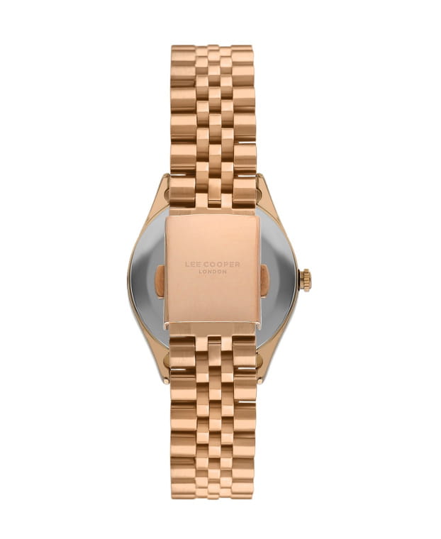 Женские часы Lee Cooper LC07818.430 выполнены в классическом стиле и сочетают строгий дизайн с надёжным механизмом. Модель оснащена кварцевым механизмом, обеспечивающим точность хода и минимальное обслуживание. Корпус круглой формы имеет размер 33 мм, изготовлен из суперметалла с IP-покрытиемIP-покрытиеМетод ионного напыления. Демонстрирует повышенную устойчивость к истиранию, окислению и химическим веществам. Под воздействием высокого давления и температуры около 1500°C молекулы металла надёжно соединяются с частицами корпуса часов., гарантирует комфорт при ношении. Циферблат серебристого цвета дополнен изысканными вставками из циркона для чёткого отсчёта времени. Защиту циферблата обеспечивает минеральное стеклоМинеральное стеклоМинеральное стекло представляет собой искусственно выращенный минерал кварца. Такое стекло отличается особой устойчивостью к повреждениям и царапинам. Уступает по некоторым качествам сапфировому стеклу., устойчивое к мелким механическим повреждениям. Стальной браслет с IP-покрытиемIP-покрытиеМетод ионного напыления. Демонстрирует повышенную устойчивость к истиранию, окислению и химическим веществам. Под воздействием высокого давления и температуры около 1500°C молекулы металла надёжно соединяются с частицами корпуса часов. на раскладной застёжкеРаскладная застёжкаТакой тип застёжки используется только на браслетах из металла. Она никогда не раскрывается полностью, происходит разделение на 2 и более частей. Раскладывающая застёжка снизит вероятность потери часов к минимуму. гарантирует удобную посадку и надёжную фиксацию на запястье. Водозащита 30WR позволяет использовать часы в повседневных условиях без риска повреждения от случайных брызг воды. Это сочетание классического дизайна, прочности материалов и качества исполнения для уверенных в себе женщин.
