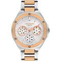 Женские наручные часы Lee Cooper LC07844.530 оснащены точным кварцевым механизмом, обеспечивающим высокую надежность и точность хода. Корпус часов изготовлен из суперметалла с неподвижным безелемБезельВнешний ободок, закрепляющий стекло. В спортивных часах так называется поворотное кольцо с делениями на циферблате, выполняет роль таймера – замеряет отрезки времени на шкале. Неподвижный безель – элемент декора. Однонаправленно вращающийся безель на дайверских часах позволяет фиксировать моменты погружения и выныривания на поверхность. с IP-покрытиемIP-покрытиеМетод ионного напыления. Демонстрирует повышенную устойчивость к истиранию, окислению и химическим веществам. Под воздействием высокого давления и температуры около 1500°C молекулы металла надёжно соединяются с частицами корпуса часов., что гарантирует долговечность и устойчивость к повреждениям. Три субдисплея отображают дату, день недели и 24-часовой формат времени, что добавляет функциональности и практичности. Для защиты циферблата используется минеральное стеклоМинеральное стеклоМинеральное стекло представляет собой искусственно выращенный минерал кварца. Такое стекло отличается особой устойчивостью к повреждениям и царапинам. Уступает по некоторым качествам сапфировому стеклу., устойчивое к царапинам и механическим повреждениям. Интегрированный браслет изготовлен из нержавеющей стали с IP-покрытиемIP-покрытиеМетод ионного напыления. Демонстрирует повышенную устойчивость к истиранию, окислению и химическим веществам. Под воздействием высокого давления и температуры около 1500°C молекулы металла надёжно соединяются с частицами корпуса часов., которая славится своей долговечностью и возможностью полировки. Метки покрыты люминесцентным покрытиемЛюминесцентное покрытиеПозволяет считывать показания времени в темноте. Производители наносят на стрелки, часовые индексы, безель или поверхность циферблата светонакопительный состав, дающий холодное свечение., обеспечивающим отличную читаемость в темноте. Браслет гармонично дополняет дизайн часов и обеспечивает комфортное ношение в течение дня благодаря раскладной застёжкеРаскладная застёжкаТакой тип застёжки используется только на браслетах из металла. Она никогда не раскрывается полностью, происходит разделение на 2 и более частей. Раскладывающая застёжка снизит вероятность потери часов к минимуму.. Эти часы сочетают в себе стиль и функциональность, что делает их универсальным аксессуаром, подходящим к любому образу. Модель станет прекрасным подарком. Часы обладают водонепроницаемостью до 50 метров (5 АТМ), что позволяет использовать их в повседневной жизни, включая контакт с водой при мытье рук или дожде.