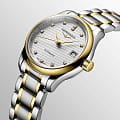 Женские швейцарские механические часы Longines Master Collection L2.128.5.77.7. Сапфировое стеклоСапфировое стеклоПрочный и надёжный материал из кристалла сапфира синтетического происхождения, характеризующийся особой твёрдостью и устойчивостью к царапинам и повреждениям. устойчивое к появлению царапин, обладающее высокой прозрачностью. Корпус часов изготовлен из нержавеющей стали и 18-каратного золота18-каратное золотоОбозначение по каратной системе пробирования, оно показывает, сколько драгоценного металла содержится в изделии. 18 карат - в составе 75% чистого золота, соответствует 750 пробе.