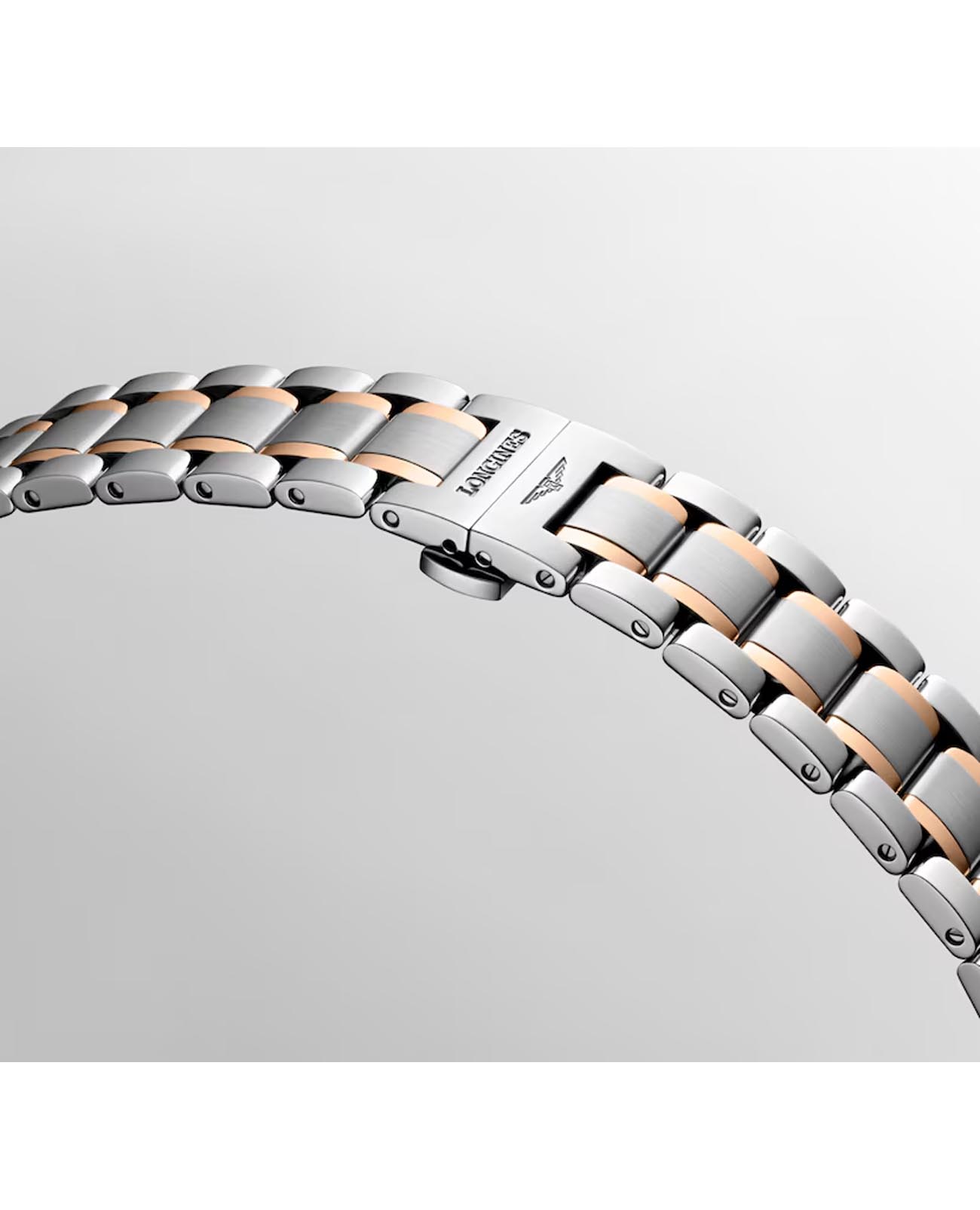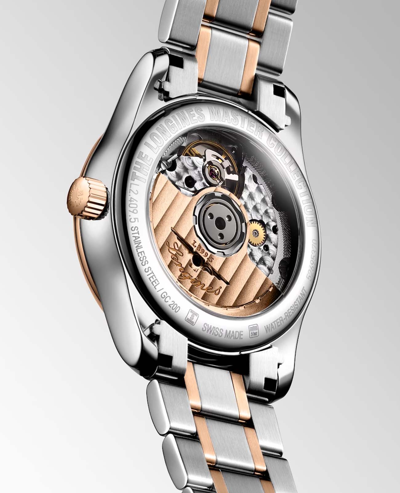 Женские швейцарские механические часы с автоподзаводом Longines Master Collection L2.409.5.89.7. Сапфировое стеклоСапфировое стеклоПрочный и надёжный материал из кристалла сапфира синтетического происхождения, характеризующийся особой твёрдостью и устойчивостью к царапинам и повреждениям. устойчивое к появлению царапин, обладающее высокой прозрачностью. Корпус часов изготовлен из нержавеющей стали. БезельБезельВнешний ободок, закрепляющий стекло. В спортивных часах так называется поворотное кольцо с делениями на циферблате, выполняет роль таймера – замеряет отрезки времени на шкале. Неподвижный безель – элемент декора. Однонаправленно вращающийся безель на дайверских часах позволяет фиксировать моменты погружения и выныривания на поверхность. с 18-каратным золотом18-каратное золотоОбозначение по каратной системе пробирования, оно показывает, сколько драгоценного металла содержится в изделии. 18 карат - в составе 75% чистого золота, соответствует 750 пробе.