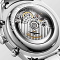 Мужские швейцарские механические часы-хронографХронографФункция позволяет измерять отрезки времени с особой точностью: часы, минуты, секунды. Верным признаком хронографа является наличие на циферблате 3 дополнительных окошек-счётчиков. с автоподзаводом Longines Master Collection L2.773.4.78.6. Сапфировое стеклоСапфировое стеклоПрочный и надёжный материал из кристалла сапфира синтетического происхождения, характеризующийся особой твёрдостью и устойчивостью к царапинам и повреждениям. устойчивое к появлению царапин, обладающее высокой прозрачностью. Корпус часов изготовлен из нержавеющей стали. Автоматический механизм с частотой баланса 28 800 полуколебаний в час и запасом хода, которого хватает примерно на 66 часов работы. Часы, минуты, малая секундная стрелка с 24-часовым индикатором в положении «9 часов». Дату показывает центральная стрелка с серповидным наконечником. Указатель фаз Луны в положении «6 часов». Класс водозащиты: 30 метров, позволит защитить корпус от случайных брызг или капель дождя. Стальной браслет на застёжке «бабочка» с кнопкамиЗастёжка "бабочка"Такой вид застёжки дополняется предохранителями, помогающими избежать случайного раскрытия браслета. Обладают изящным исполнением. .