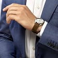 Дополнительные особенности включают сапфировое стеклоСапфировое стеклоПрочный и надёжный материал из кристалла сапфира синтетического происхождения, характеризующийся особой твёрдостью и устойчивостью к царапинам и повреждениям. с двухсторонним антибликовым покрытиемАнтибликовое покрытиеСлой оксида металла в 0,13-0,3 микрон, благодаря которому стекло часов не бликует и не отражает свет. Антибликовое покрытие уменьшает отражение света в 10 раз, обеспечивая отличную читаемость показателей циферблата., что обеспечивает отличную видимость циферблата в любых условиях. Стрелки и метки с люминесцентнымЛюминесцентное покрытиеПозволяет считывать показания времени в темноте. Производители наносят на стрелки, часовые индексы, безель или поверхность циферблата светонакопительный состав, дающий холодное свечение. покрытием облегчают чтение времени в темноте. Окошко даты удобно расположено на отметке 3 часа. Часы обладают классом водозащиты 100 метров, что позволяет использовать их для плавания и занятий водными видами спорта. Кожаный ремешок на стандартной застежке придает часам классический и элегантный вид.