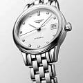 Швейцарские механические часы с автоподзаводом Longines Flagship L4.274.4.27.6. Сапфировое стеклоСапфировое стеклоПрочный и надёжный материал из кристалла сапфира синтетического происхождения, характеризующийся особой твёрдостью и устойчивостью к царапинам и повреждениям. с многослойным антибликовым покрытием с обеих сторон, устойчивое к появлению царапин, обладающее высокой прозрачностью. Корпус часов изготовлен из стали. Циферблат с 12 бриллиантами группы Top Wesselton VS-SI общим весом 0.034 карата. Окошко даты находится в положении 3 часа. Класс водозащиты: 30 метров, позволит защитить корпус от случайных брызг или капель дождя. Стальной браслет на застёжке «бабочка» с кнопкамиЗастёжка "бабочка"Такой вид застёжки дополняется предохранителями, помогающими избежать случайного раскрытия браслета. Обладают изящным исполнением. .
