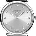 Женские швейцарские часы Longines La Grande Classique L4.512.4.74.6, кварцевый механизм с высокой точностью. Сапфировое стеклоСапфировое стеклоПрочный и надёжный материал из кристалла сапфира синтетического происхождения, характеризующийся особой твёрдостью и устойчивостью к царапинам и повреждениям. устойчивое к появлению царапин, обладающее высокой прозрачностью. Корпус часов изготовлен из стали. Циферблат дополнен 12 бриллиантами. Класс водозащиты: 30 метров, позволит защитить корпус от случайных брызг или капель дождя. Браслет из стали на раскладной застёжкеРаскладная застёжкаТакой тип застёжки используется только на браслетах из металла. Она никогда не раскрывается полностью, происходит разделение на 2 и более частей. Раскладывающая застёжка снизит вероятность потери часов к минимуму..