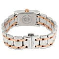 Женские швейцарские часы с бриллиантами Longines DolceVita L5.155.5.89.7, кварцевый механизм с высокой точностью. Сапфировое стеклоСапфировое стеклоПрочный и надёжный материал из кристалла сапфира синтетического происхождения, характеризующийся особой твёрдостью и устойчивостью к царапинам и повреждениям. устойчивое к появлению царапин, обладающее высокой прозрачностью. Класс водозащиты: 30 метров, позволит защитить корпус от случайных брызг или капель дождя. Браслет из нержавеющей стали со звеньями из розового золота. Фиксированный безель из нержавеющей стали с кольцом из розового золота и бриллиантами. Белый перламутровый циферблат с черными стрелками и бриллиантовыми часовыми метками. Застёжка бабочка с кнопкамиЗастёжка "бабочка"Такой вид застёжки дополняется предохранителями, помогающими избежать случайного раскрытия браслета. Обладают изящным исполнением. .