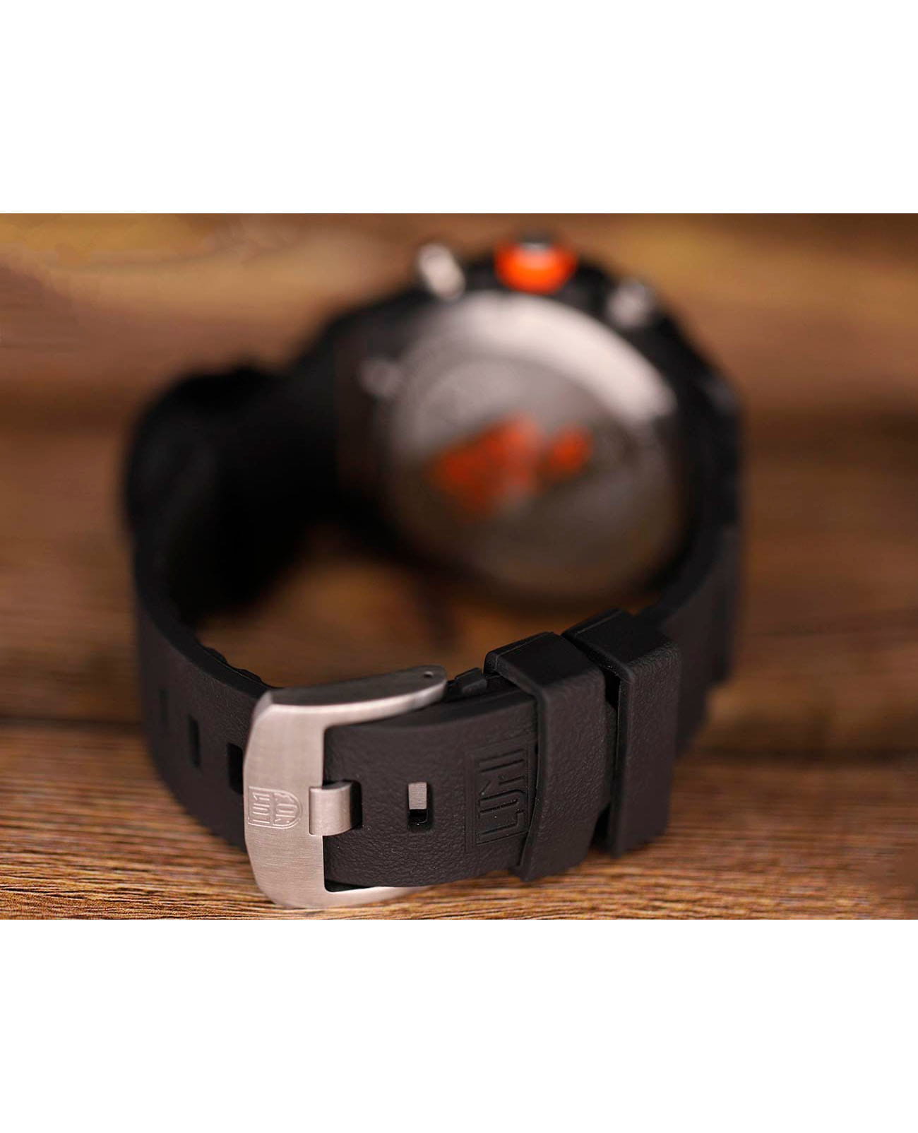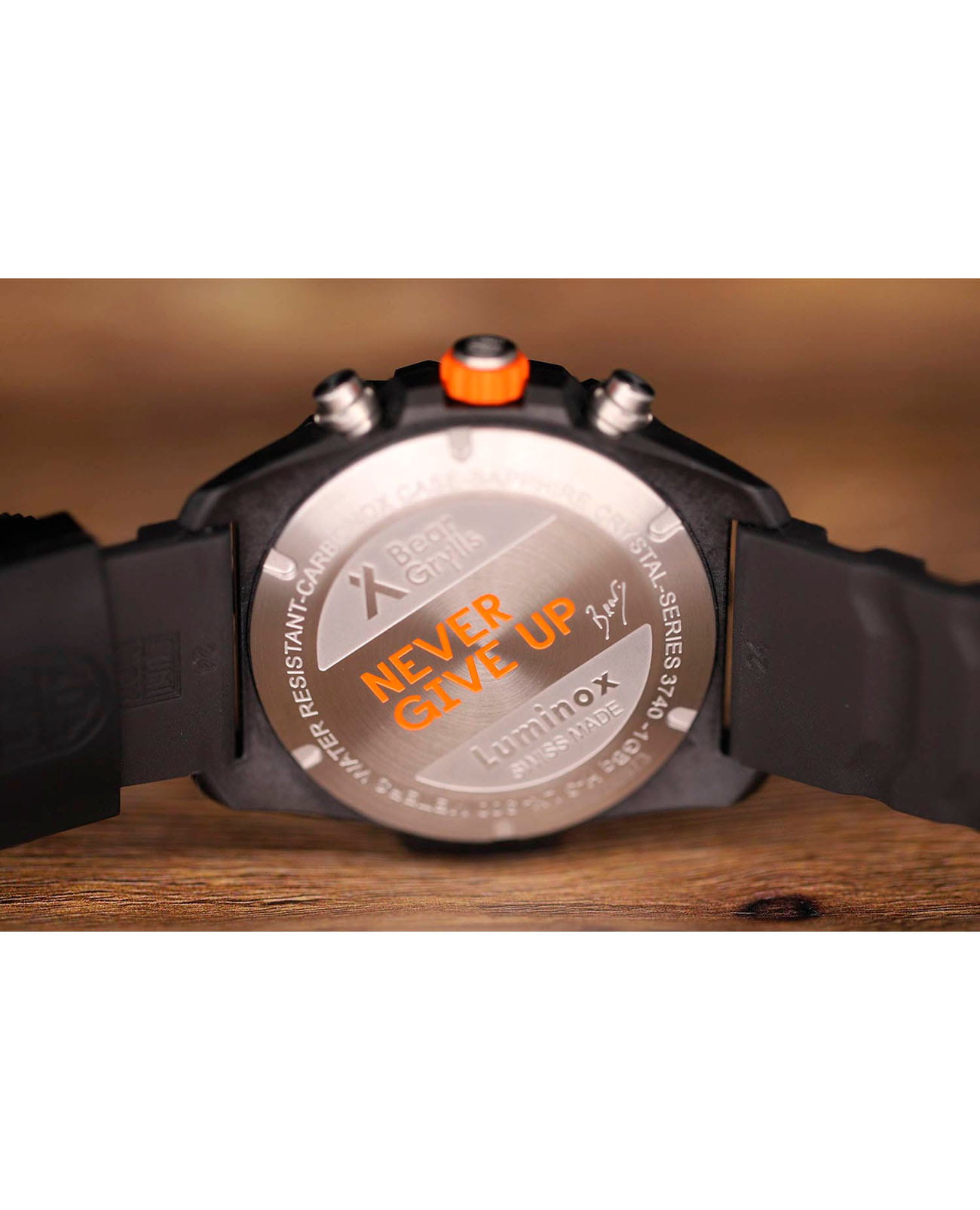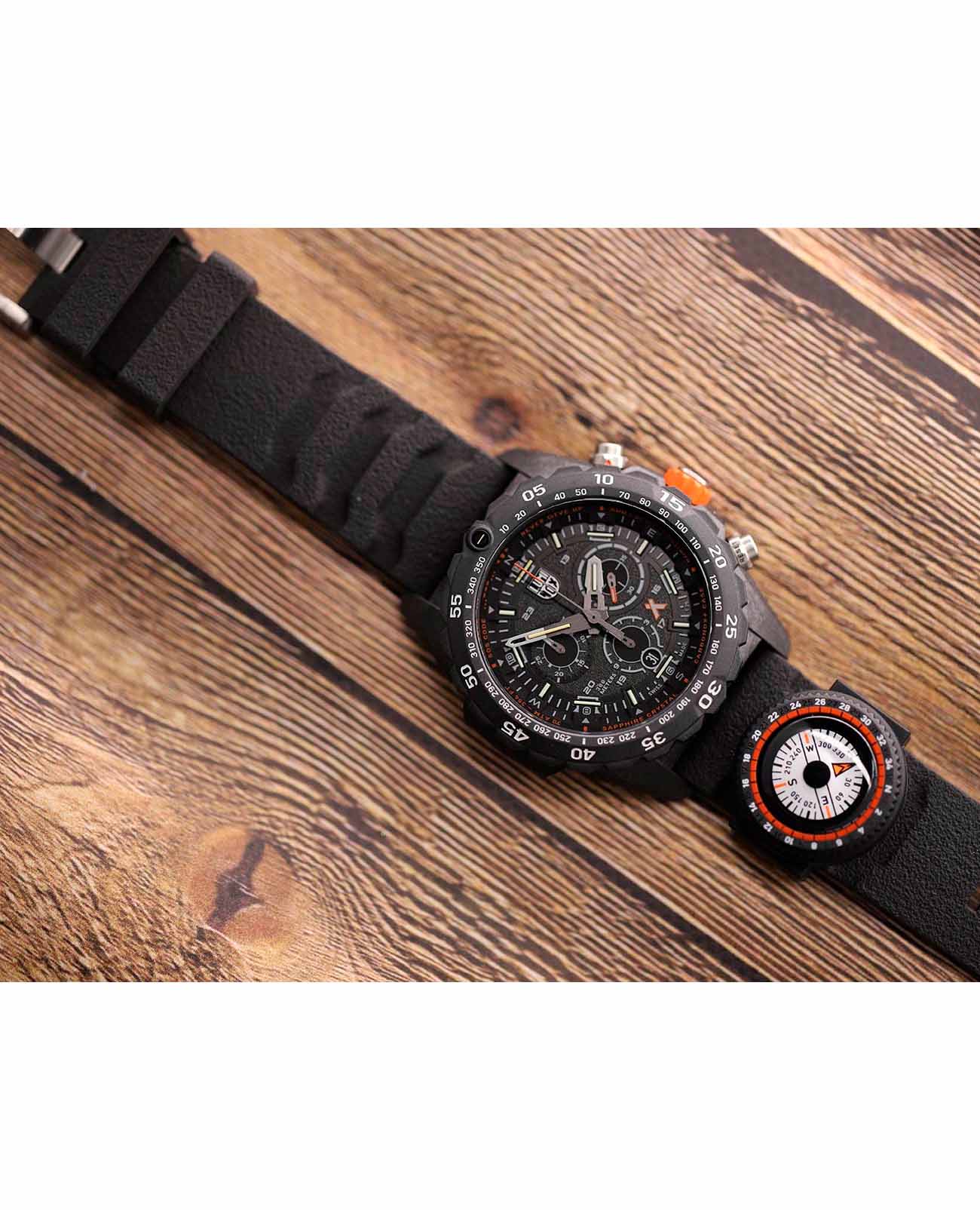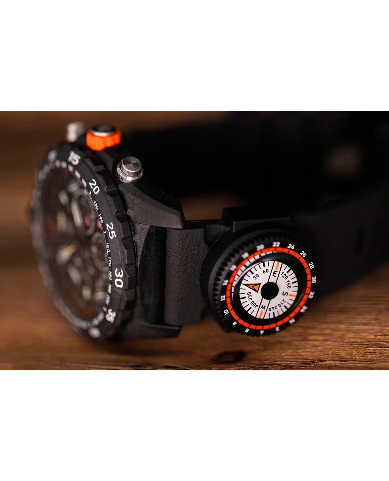 Мужские наручные часы-хронографХронографФункция позволяет измерять отрезки времени с особой точностью: часы, минуты, секунды. Верным признаком хронографа является наличие на циферблате 3 дополнительных окошек-счётчиков. Luminox Bear Grylls Survival XB.3741 представляют собой идеальный выбор для тех, кто ведет активный образ жизни и ценит надежность и функциональность. Модель обладает круглым корпусом диаметром 45 мм, изготовленным из прочного карбона черного цвета, который обеспечивает высокую устойчивость к внешним воздействиям и легкость конструкции. Браслет выполнен из полиуретана черного цвета на стандартной застежке, гарантирующей комфортное ношение и безопасность. Циферблат черного цвета оснащен крупными индексами и стрелками с люминесцентным покрытиемЛюминесцентное покрытиеПозволяет считывать показания времени в темноте. Производители наносят на стрелки, часовые индексы, безель или поверхность циферблата светонакопительный состав, дающий холодное свечение., что позволяет легко читать время даже в условиях недостаточной освещенности. Для защиты используется сапфировое стеклоСапфировое стеклоПрочный и надёжный материал из кристалла сапфира синтетического происхождения, характеризующийся особой твёрдостью и устойчивостью к царапинам и повреждениям. с антибликовым покрытиемАнтибликовое покрытиеСлой оксида металла в 0,13-0,3 микрон, благодаря которому стекло часов не бликует и не отражает свет. Антибликовое покрытие уменьшает отражение света в 10 раз, обеспечивая отличную читаемость показателей циферблата., обеспечивающее прочную защиту от царапин и четкое чтение времени при любых условиях освещения. Часы работают на кварцевом механизме, который обеспечивает точное время без необходимости подзаводки. Модель также оснащена функцией второго часового поясаВторой часовой поясФункция, позволяющая отображать время двух часовых поясов одновременно., делая ее удобной для путешествий. Водонепроницаемость часов достигает 300 метров (30 атмосфер), что позволяет использовать их при плавании, дайвинге и других водных видах спорта. Luminox XB.3741 — это не просто аксессуар, а инструмент для выживания, созданный в сотрудничестве с Bear Grylls, который сочетает в себе надежность, функциональность и стильный дизайн.