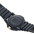 Мужские наручные часы Luminox XS.0325.GP из коллекции Leatherback SEA Turtle Giant сочетают в себе спортивный дизайн и надежность швейцарского качества. Модель обладает круглым корпусом диаметром 44 мм, изготовленным из карбонаКарбонОт «carbon», «carbone» - углерод, углепластик - полимерный композиционный материал из переплетённых под определенным углом между собой нитей углеродного волокна, применяется для изготовления лёгких, но прочных деталей. В часах часто используют для украшения циферблатов и ремешков. Так же карбон используется в изготовлении корпусов. Такие корпуса обладают антикоррозионным свойством, не поддаются электромагнитному излучению, обладают повышенной прочностью и противоударностью. (CARBONOX™), что обеспечивает высокую устойчивость к внешним воздействиям при сохранении легкости. Циферблат золотистого цвета украшен контрастными черными метками и стрелками с , гарантирующим постоянную видимость времени даже в условиях низкой освещенности. Часы оснащены кварцевым механизмом швейцарского производства, обеспечивающим точность хода ±15 секунд в месяц. Защиту циферблата обеспечивает прочное минеральное стеклоМинеральное стеклоМинеральное стекло представляет собой искусственно выращенный минерал кварца. Такое стекло отличается особой устойчивостью к повреждениям и царапинам. Уступает по некоторым качествам сапфировому стеклу., устойчивое к царапинам и механическим повреждениям. Водонепроницаемость модели достигает 10 атмосфер (100 метров), что делает их подходящими для плавания и активного отдыха на воде. Модель также оснащена безелемБезельВнешний ободок, закрепляющий стекло. В спортивных часах так называется поворотное кольцо с делениями на циферблате, выполняет роль таймера – замеряет отрезки времени на шкале. Неподвижный безель – элемент декора. Однонаправленно вращающийся безель на дайверских часах позволяет фиксировать моменты погружения и выныривания на поверхность. с односторонним вращением, что добавляет функциональности при использовании в водных условиях. Ремешок выполнен из полиуретана (PU) с нержавеющей стальной застежкой, что обеспечивает комфортное ношение в течение дня. Дополнительно часы имеют окно даты в положении «3 часа», что делает их практичными для повседневного использования.
