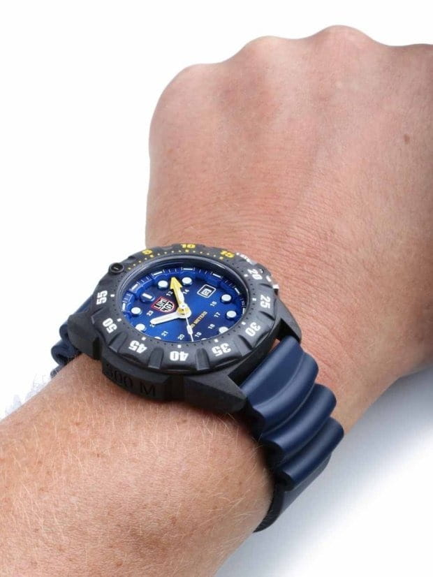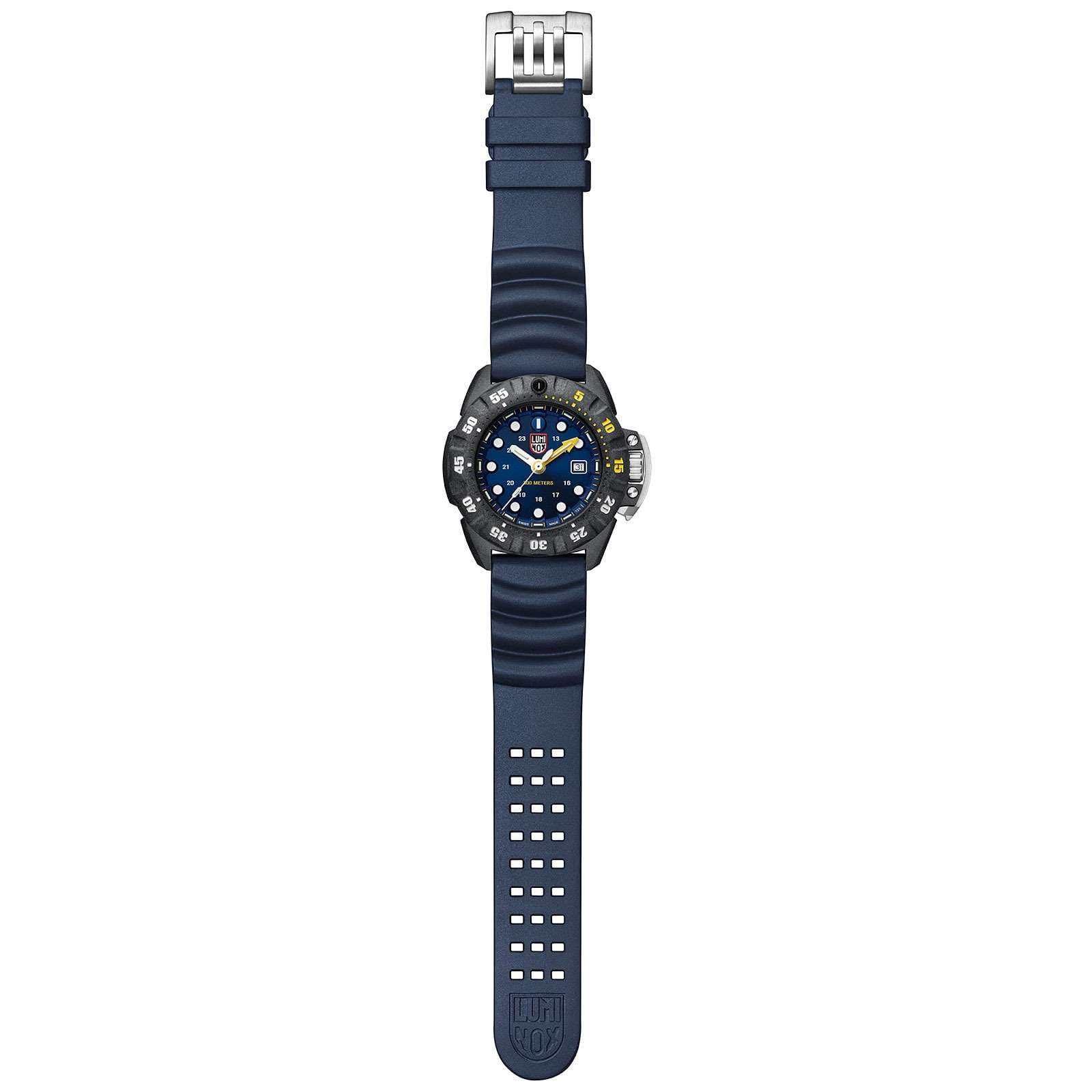 Часы Luminox XS.1553 представляют собой сочетание швейцарского качества и современных технологий, создавая надежный аксессуар для любителей активного образа жизни и дайвинга. В их основе лежит кварцевый механизм, обеспечивающий точность и долговечность. Корпус часов выполнен из прочного пластика, усиленного прессованным карбономКарбонОт «carbon», «carbone» - углерод, углепластик - полимерный композиционный материал из переплетённых под определенным углом между собой нитей углеродного волокна, применяется для изготовления лёгких, но прочных деталей. В часах часто используют для украшения циферблатов и ремешков. Так же карбон используется в изготовлении корпусов. Такие корпуса обладают антикоррозионным свойством, не поддаются электромагнитному излучению, обладают повышенной прочностью и противоударностью., что делает их легкими и устойчивыми к повреждениям. Эти часы обладают синим циферблатом и надежным каучуковым ремешком такого же цвета с классической застежкой, обеспечивающим комфортное ношение в любых условиях. Водозащита до 300 метров позволяет использовать часы при погружениях на значительные глубины, а LLTLLTLLT — это автономный механизм подсветки, основанный на использовании микроскопических газонаполненных элементов. Специальные герметичные капсулы из боросиликатного стекла, интегрированные в циферблат, генерируют свечение без необходимости подключения к внешним источникам энергии. Для их работы не требуется ни дополнительный свет, ни механическое воздействие (например, нажатие кнопки). Свечение возникает благодаря химическому процессу: реакция между тритием, заключенным в капсулах, и люминофорным покрытием создает стабильное автономное освещение. Технология обеспечивает энергетическую независимость и долговечность подсветки.-подсветка гарантирует отличную видимость в темноте. Сапфировое стеклоСапфировое стеклоПрочный и надёжный материал из кристалла сапфира синтетического происхождения, характеризующийся особой твёрдостью и устойчивостью к царапинам и повреждениям. с антибликовым покрытиемАнтибликовое покрытиеСлой оксида металла в 0,13-0,3 микрон, благодаря которому стекло часов не бликует и не отражает свет. Антибликовое покрытие уменьшает отражение света в 10 раз, обеспечивая отличную читаемость показателей циферблата. защищает циферблат от царапин и уменьшает отражения, обеспечивая легкость считывания информации. Функция календаря с указанием числа добавляет практичности, а 12- и 24-часовой формат времени позволяет выбрать наиболее удобное отображение. Завинчивающаяся заводная головка с защитой и стальная задняя крышка обеспечивают дополнительную герметичность и прочность конструкции. Вращающийся в одном направлении безельБезельВнешний ободок, закрепляющий стекло. В спортивных часах так называется поворотное кольцо с делениями на циферблате, выполняет роль таймера – замеряет отрезки времени на шкале. Неподвижный безель – элемент декора. Однонаправленно вращающийся безель на дайверских часах позволяет фиксировать моменты погружения и выныривания на поверхность. помогает отслеживать время погружения, что делает эти часы идеальными для дайверов. Габариты часов составляют 45 мм в диаметре и 15 мм в толщину, при весе всего 91 г, что делает их удобными для повседневного использования и при з