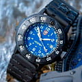 Мужские наручные часы Luminox XS.3003.EVO.S из коллекции Original Navy SEAL сочетают в себе спортивный дизайн и надежность швейцарского качества. Модель обладает круглым корпусом диаметром 43 мм, изготовленным из карбонаКарбонОт «carbon», «carbone» - углерод, углепластик - полимерный композиционный материал из переплетённых под определенным углом между собой нитей углеродного волокна, применяется для изготовления лёгких, но прочных деталей. В часах часто используют для украшения циферблатов и ремешков. Так же карбон используется в изготовлении корпусов. Такие корпуса обладают антикоррозионным свойством, не поддаются электромагнитному излучению, обладают повышенной прочностью и противоударностью., что обеспечивает высокую устойчивость к внешним воздействиям при сохранении легкости. Циферблат синего цвета украшен контрастными метками и стрелками с , гарантирующим постоянную видимость времени даже в условиях низкой освещенности. Часы оснащены кварцевым механизмом швейцарского производства, обеспечивающим точность хода ±15 секунд в месяц. Защиту циферблата обеспечивает прочное минеральное стеклоМинеральное стеклоМинеральное стекло представляет собой искусственно выращенный минерал кварца. Такое стекло отличается особой устойчивостью к повреждениям и царапинам. Уступает по некоторым качествам сапфировому стеклу. с антибликовым покрытиемАнтибликовое покрытиеСлой оксида металла в 0,13-0,3 микрон, благодаря которому стекло часов не бликует и не отражает свет. Антибликовое покрытие уменьшает отражение света в 10 раз, обеспечивая отличную читаемость показателей циферблата., устойчивое к царапинам и механическим повреждениям. Водонепроницаемость модели достигает 20 атмосфер (200 метров), что делает их подходящими для плавания и активного отдыха на воде, включая дайвинг. Модель также оснащена безелемБезельВнешний ободок, закрепляющий стекло. В спортивных часах так называется поворотное кольцо с делениями на циферблате, выполняет роль таймера – замеряет отрезки времени на шкале. Неподвижный безель – элемент декора. Однонаправленно вращающийся безель на дайверских часах позволяет фиксировать моменты погружения и выныривания на поверхность. с односторонним вращением, что добавляет функциональности при использовании в водных условиях. Ремешок выполнен из полиуретана, что обеспечивает комфортное ношение в течение дня. Дополнительно часы имеют окно даты в положении «3 часа», что делает их практичными для повседневного использования.